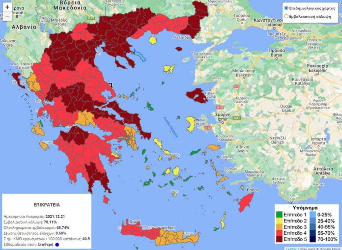 Αρκετά δύσκολη παραμένει η κατάσταση με τον κορονοϊό στην Ελλάδα καθώς σύμφωνα με τον επιδημιολογικό χάρτη που ανακοινώθηκε και έχει δημοσιευτεί στη σχετική ιστοσελίδα οι περιοχές που είναι στο «βαθύ κόκκινο» στη χώρα μας είναι συνολικά 20.
