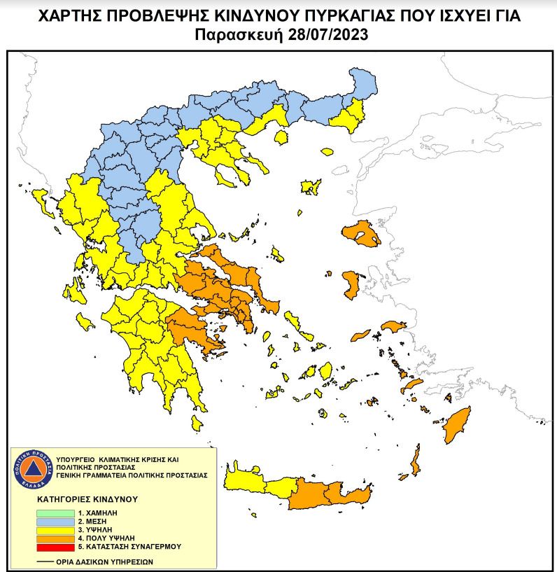 Επισημαίνεται ότι ο σχετικός χάρτης πρόβλεψης κινδύνου εκδήλωσης πυρκαγιάς δημοσιεύεται στην αρχική σελίδα του ιστοτόπου της Γενικής Γραμματείας Πολιτικής Προστασίας (www.civilprotection.gr).