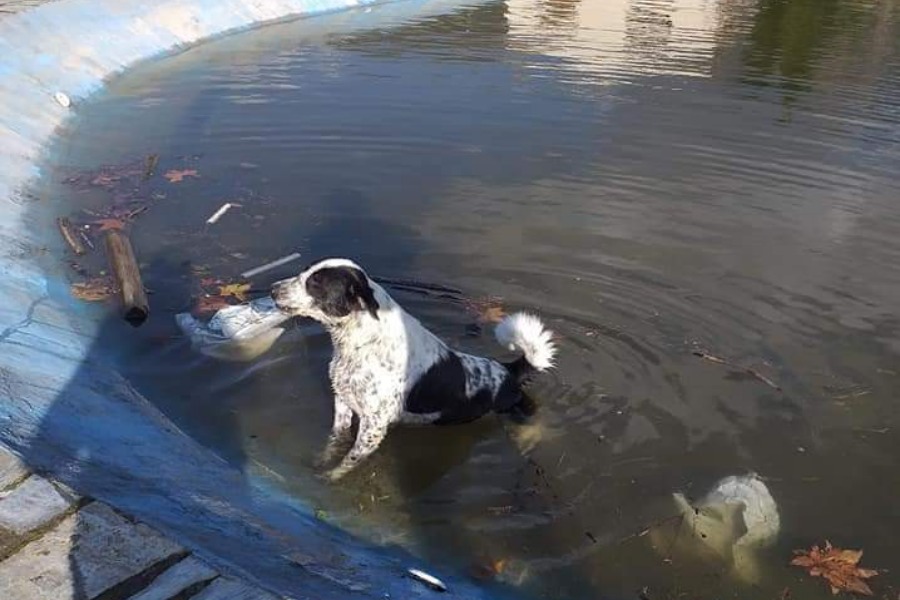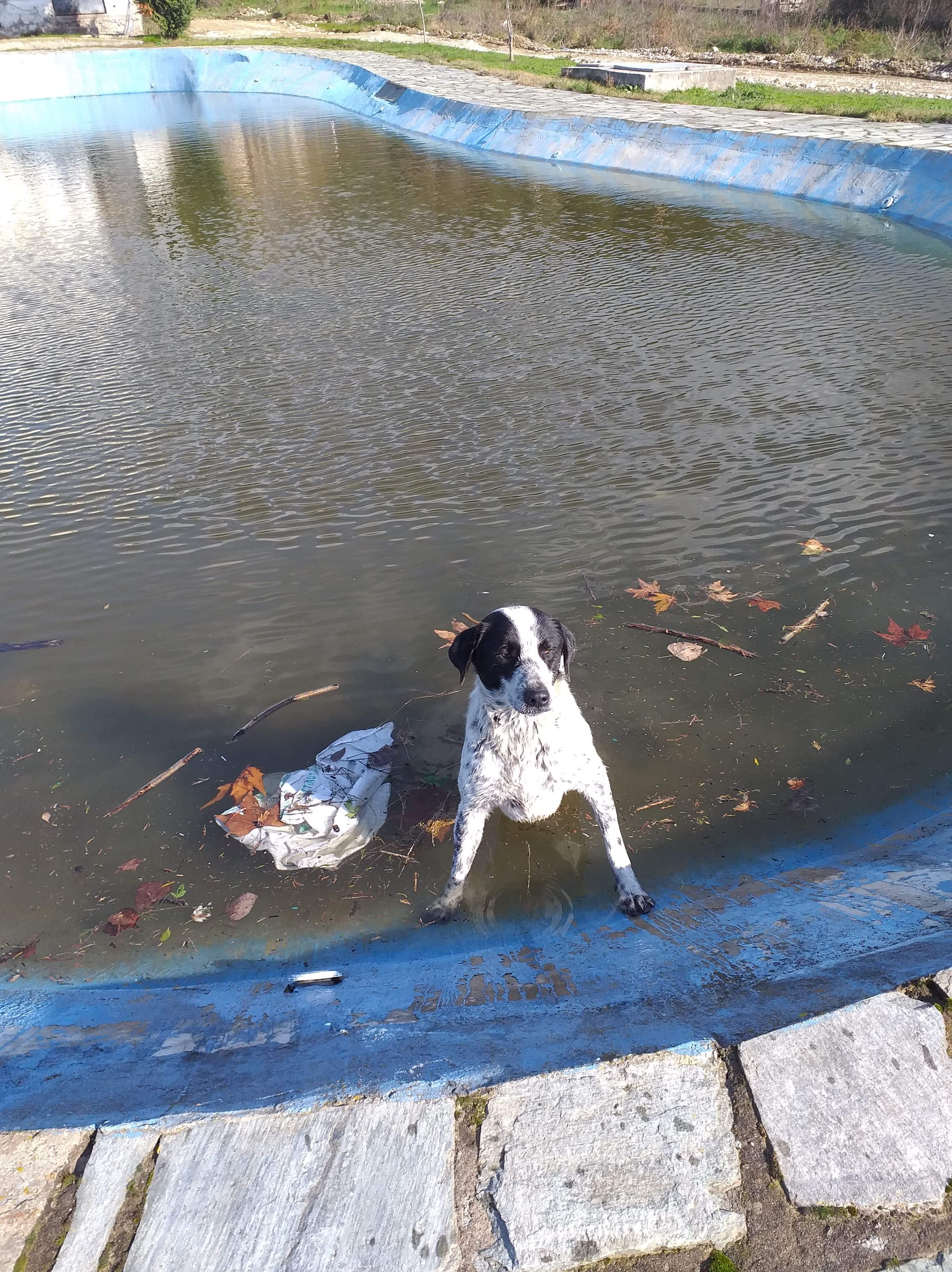 Με μεγάλη δυσκολία το άτυχο ζώο προσπαθούσε να κινηθεί και να κρατήσει το κεφάλι του έξω από το νερό. Ο κτηνοτρόφος που βρέθηκε στο σημείο, διότι ακριβώς δίπλα είναι η παραλαβή γάλακτος δεν το σκέφτηκε, έβγαλε τα ρούχα του, βούτηξε στο νερό και πλησίασε με προσοχή κοντά στον σκύλο και τον έβγαλε έξω.