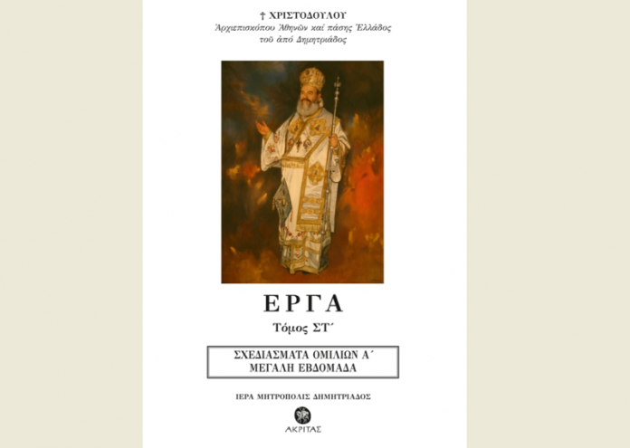 Εκδόθηκε και κυκλοφορήθηκε, από την Ιερά Μητρόπολη Δημητριάδος και τις Εκδόσεις «Ακρίτας», ο 6ος Τόμος των ΕΡΓΩΝ του Μακαριστού Αρχιεπισκόπου Αθηνών & Πάσης Ελλάδος Χριστοδούλου, του από Δημητριάδος. Ο Τόμος έχει τίτλο «Σχεδιάσματα Ομιλιών Α΄» και περιλαμβάνει 91 ιδιόχειρα σχεδιάσματα των ομιλιών που εκφώνησε την περίοδο της Αγίας και Μεγάλης Εβδομάδος, από το 1967 ως το τέλος της ζωής του, ως Αρχιμανδρίτης, Μητροπολίτης Δημητριάδος και Αρχιεπίσκοπος Αθηνών.