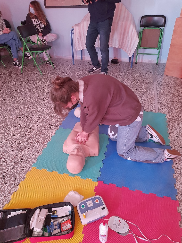 Επιπλέον, οι εκπαιδευτές παρουσίασαν στους/στις μαθητές/τριες τις πολύτιμες γνώσεις τους για θέματα που αφορούν στις Πρώτες Βοήθειες, ώστε να είναι σε θέση να βοηθήσουν τον συνάνθρωπό τους και τον εαυτό τους οποιαδήποτε στιγμή βρεθούν σε κίνδυνο.