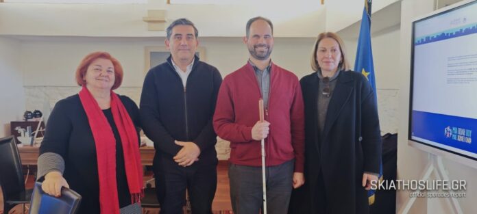 Στη συνάντηση που πραγματοποιήθηκε στο Δημαρχείο, έγινε παρουσίαση της καινοτόμου εφαρμογής inclucity4all που έχει στόχο να κάνει την καθημερινότητα των ανθρώπων με οπτική και κινητική αναπηρία πιο εύκολη και λειτουργική, προσφέροντας χρήσιμες πληροφορίες που ενισχύουν την αυτονομία, την ισότιμη συμμετοχή και την πρόσβαση σε σημεία και υπηρεσίες. Ο Δήμος Σκιάθου θα είναι ο πρώτος νησιώτικος Δήμος που θα ενταχθεί στο πρόγραμμα.