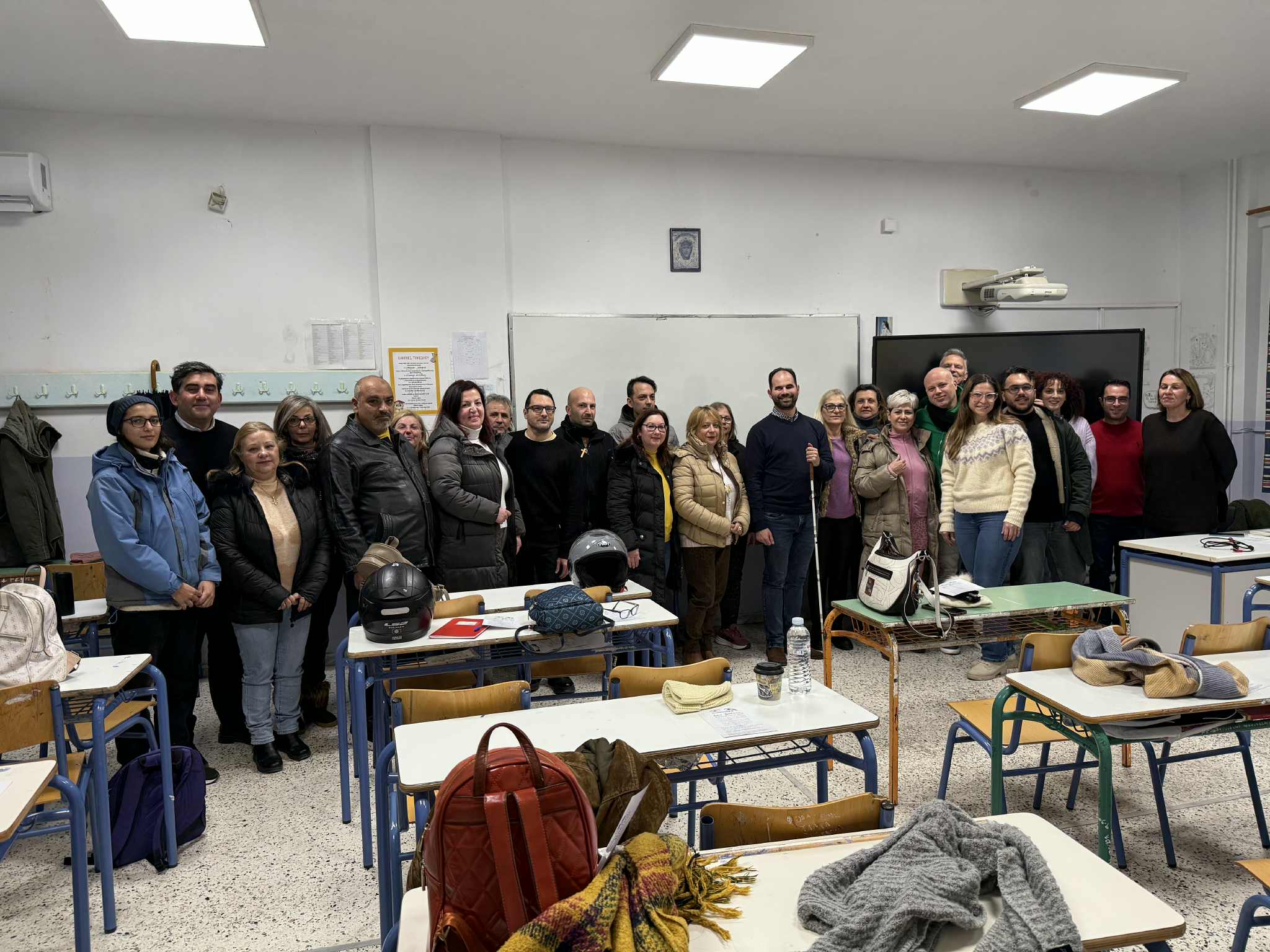 Ο Βαγγέλης Αυγουλάς, εκ γενετής τυφλός, μοιράστηκε σε περίπου 1.000 μαθητές, την προσωπική του ιστορία, μίλησε για την καθημερινότητά του, τις προκλήσεις που αντιμετωπίζει και τον τρόπο με τον οποίο τις υπερβαίνει. Εντυπωσίασε τους μαθητές με τον λόγο του, το χιούμορ του και την αισιοδοξία του, ενώ ενέπνευσε να βλέπουμε τη ζωή με περισσότερη θετικότητα και πίστη στις δυνατότητές μας, και επεσήμανε πως με συνεχή προσπάθεια μπορούμε να επιτύχουμε κάθε στόχο. Ιδιαίτερο ενδιαφέρον εκδήλωσε ο κ. Αυγουλάς για τα Ειδικά Σχολεία, σχετικά με τη στελέχωση τους και το εκπαιδευτικό πρόγραμμα που υλοποιούν.