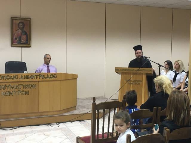 Τη Παρασκευή 23 Σεπτεμβρίου στο Πνευματικό Κέντρο της Ιεράς Μητροπόλεως Δημητριάδος πραγματοποιήθηκε η παρουσίαση του ετήσιου εκπαιδευτικού προγράμματος του Βρεφονηπιακού Σταθμού της Ιεράς Μητροπόλεως Δημητριάδος “Μια βόλτα στα Βυζαντινά Χρόνια” με τη παρουσία των γονέων, του Πρωτοσύγγελου της Μητροπόλεως π. Δαμασκηνού και της συγγραφέως – νηπιαγωγού κ. Έυης Τσιτιρίδου.