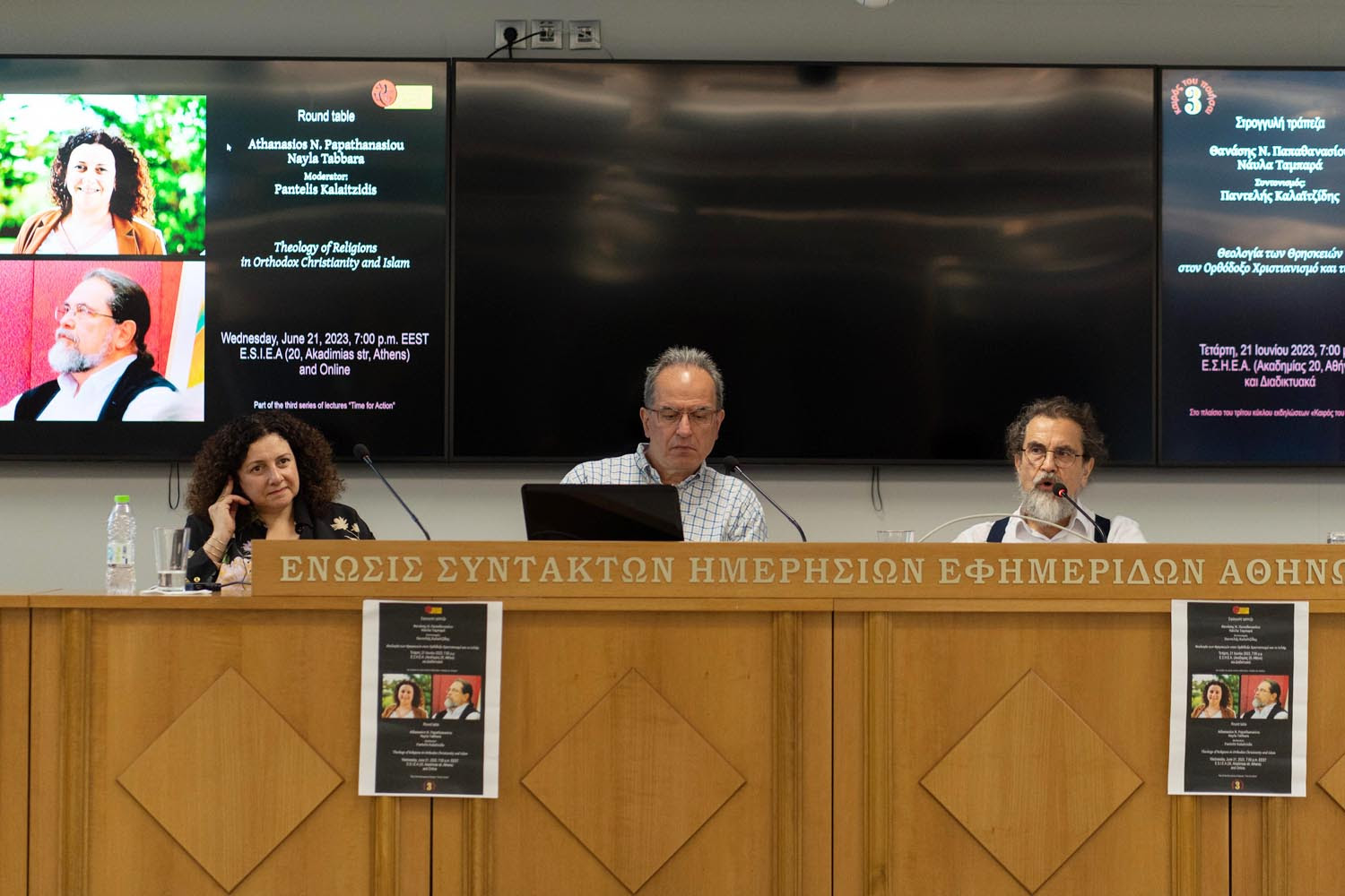 Πραγματοποιήθηκε την Τετάρτη 21 Ιουνίου η στρογγυλή τράπεζα με θέμα «Θεολογία των Θρησκειών στον Ορθόδοξο Χριστιανισμό και το Ισλάμ» με τη συμμετοχή του Θανάση Ν. Παπαθανασίου, Αρχισυντάκτη του περιοδικού «Σύναξη», Αναπληρωτή Καθηγητή της Ανώτατης Εκκλησιαστικής Ακαδημίας Αθηνών και της Nayla Tabbara, Προέδρου του Ιδρύματος Adyan, Καθηγήτριας Ισλαμικών Σπουδών στο Πανεπιστήμιο Saint Joseph της Βηρυτού (Λίβανος), με συντονισμό του Παντελή Καλαϊτζίδη, Διευθυντή της Ακαδημίας Θεολογικών Σπουδών Βόλου. Η εκδήλωση πραγματοποιήθηκε στην Αθήνα, στα γραφεία της Ε.Σ.Η.Ε.Α. και ήταν η τελευταία της σειράς «Καιρός του ποιήσαι» για φέτος. Η βιντεοσκόπηση της είναι διαθέσιμη στο κανάλι της Ακαδημίας στο YouTube, στις διευθύνσεις https://www.youtube.com/watch?v=g7UxwfKSu40 (ελληνικά)
