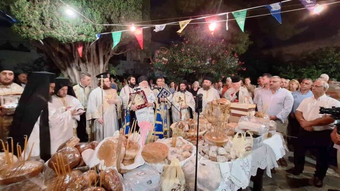 Στο κήρυγμά του ο Σεβασμιώτατος αναφέρθηκε στην ιστορική στιγμή της εύρεσης της Ιεράς Εικόνος το 1825, τονίζοντας: «Αυτό που έζησαν οι κάτοικοι αυτού του νησιού, όταν μια τέτοια μέρα, πριν 200 ακριβώς χρόνια, έβρισκαν με θαυμαστό τρόπο αυτή την εικόνα της Παναγίας σε μια δύσκολη εποχή κατά την οποία για 400 και πλέον χρόνια η πατρίδα μας ζούσε δεμένη με τη δουλεία στην οθωμανική κατάκτηση. Κι όμως, μέσα σε αυτές τις συνθήκες, ο λαός κράτησε άσβεστη την πίστη. Η Ορθόδοξη πίστη υπήρξε η δύναμη του Γένους. Τι κι αν χάθηκε η κρατική εξουσία, τι κι αν έσβησε η Βυζαντινή Αυτοκρατορία; Παρέμεινε ζωντανή η Εκκλησία, οι επίσκοποι, οι ιερείς, οι μοναχοί και οι μονές, που με τις γιορτές, τις νηστείες, την Ανάσταση του Χριστού και τη μνήμη των αγίων κράτησαν άσβεστη την ελπίδα για την ανάσταση της πατρίδας». Και συνέχισε: «το μικρό και ασήμαντο στα μάτια των ανθρώπων νησί έγινε φημισμένο σε όλο τον κόσμο, και δύο αιώνες μετά, εμείς συνεχίζουμε το έργο των Πατέρων μας κρατώντας ζωντανό τον τόπο, το μοναστήρι και το μέγα κειμήλιο της πίστεώς μας».