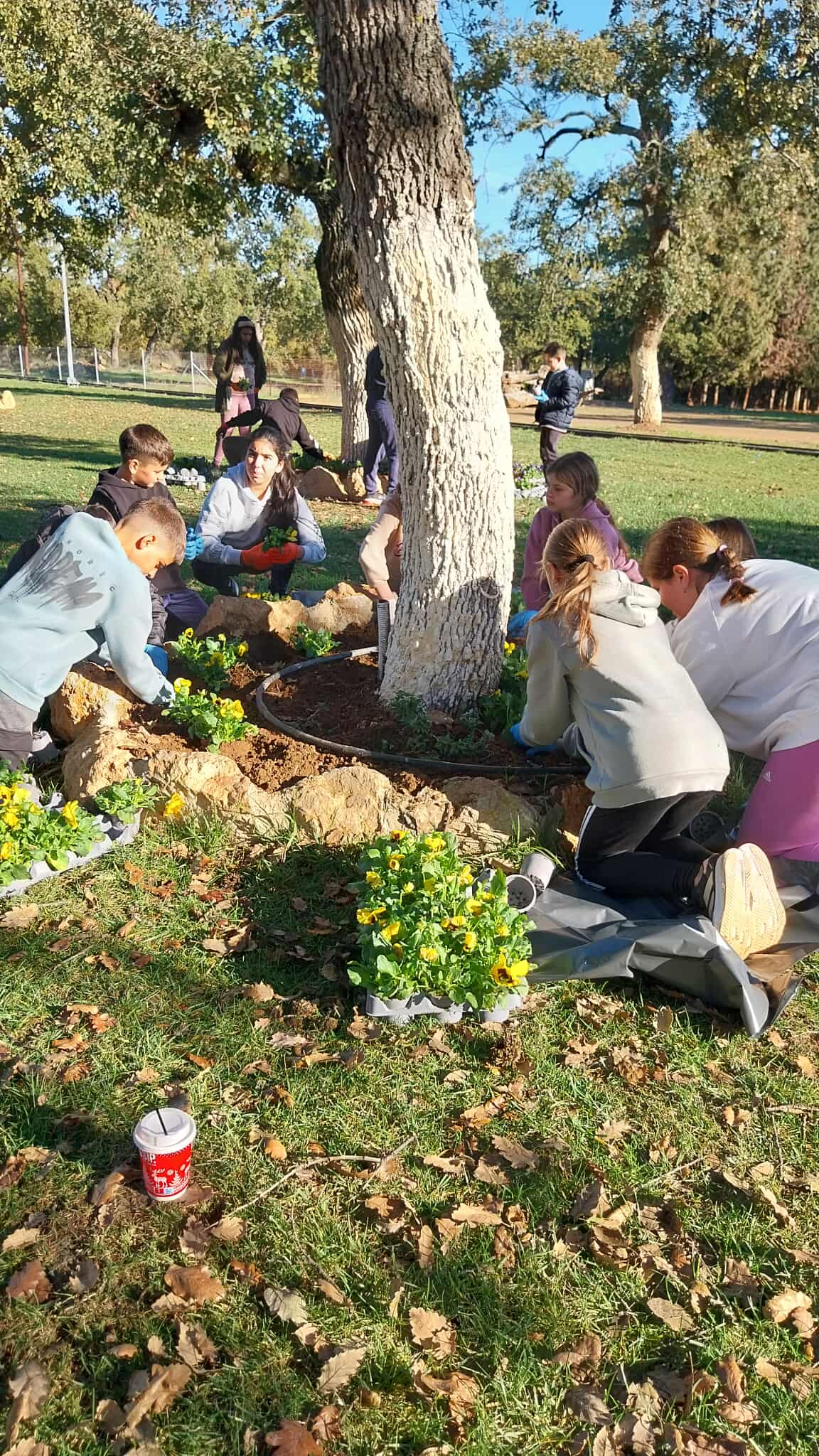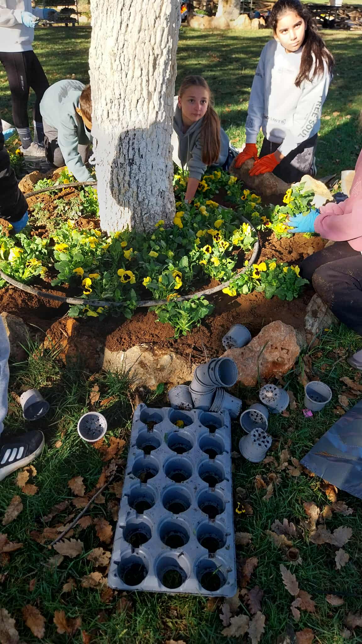 Τα παιδιά φύτεψαν λουλούδια σε παρτέρια γύρω από τα δέντρα στα πλαίσια του προγράμματος «Μικρά Παιδιά – Μεγάλοι Φύλακες του δάσους» που υλοποιούν η Ε και ΣΤ Τάξεις του 5ου Δημοτικού Σχολείου, με την υποστήριξη του Δήμου Αλμυρού.