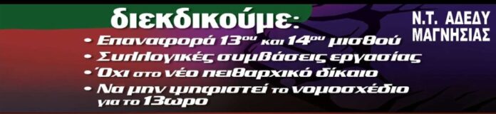 Ν.Τ. ΑΔΕΔΥ Μαγνησίας: Σε απεργία την 1η Οκτωβρίου
