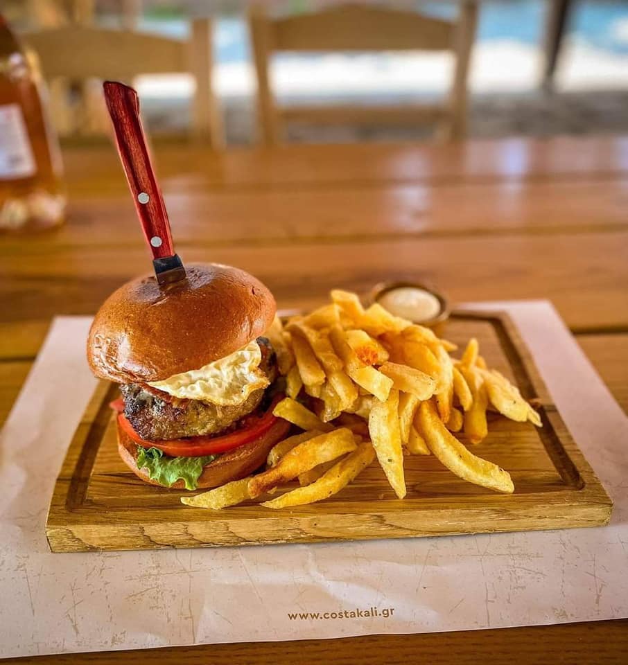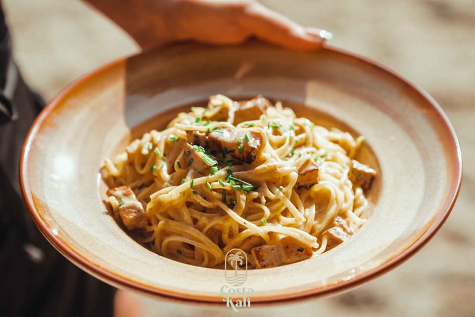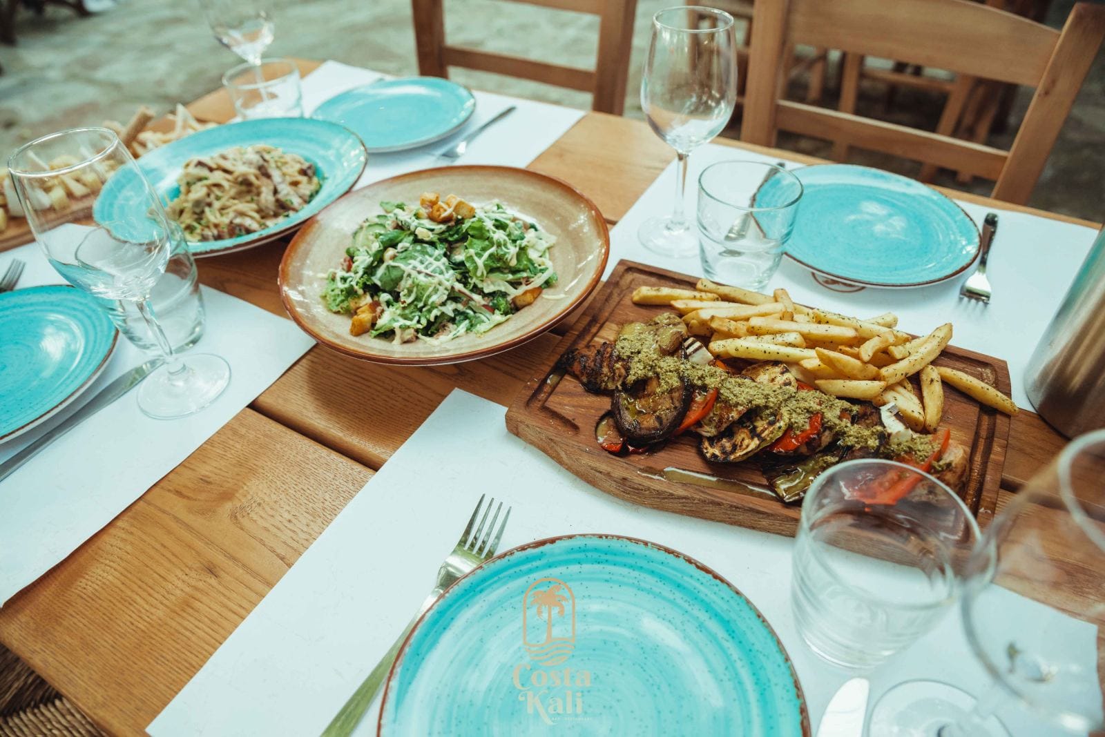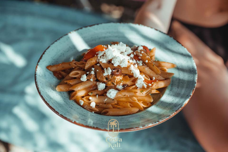 Όταν θα βρεθείτε στο Costa Kali Restaurant & Beach Bar μετά το μπάνιο σας, επισκεφθείτε το εστιατόριο και μην ξεχάσετε να δοκιμάσετε οπωσδήποτε τις σπεσιαλιτέ! Φιλέτο λαβράκι, Λιγκουίνι θαλασσινών και caprese κοτόπουλο!