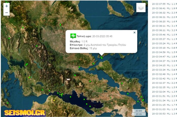 Έξι μικροσεισμοί μεγέθους 1 ως 2,3 της κλίμακας Ρίχτερ έγιναν χθες και σήμερα στον θαλάσσιο χώρο κοντά στο Τρίκερι.