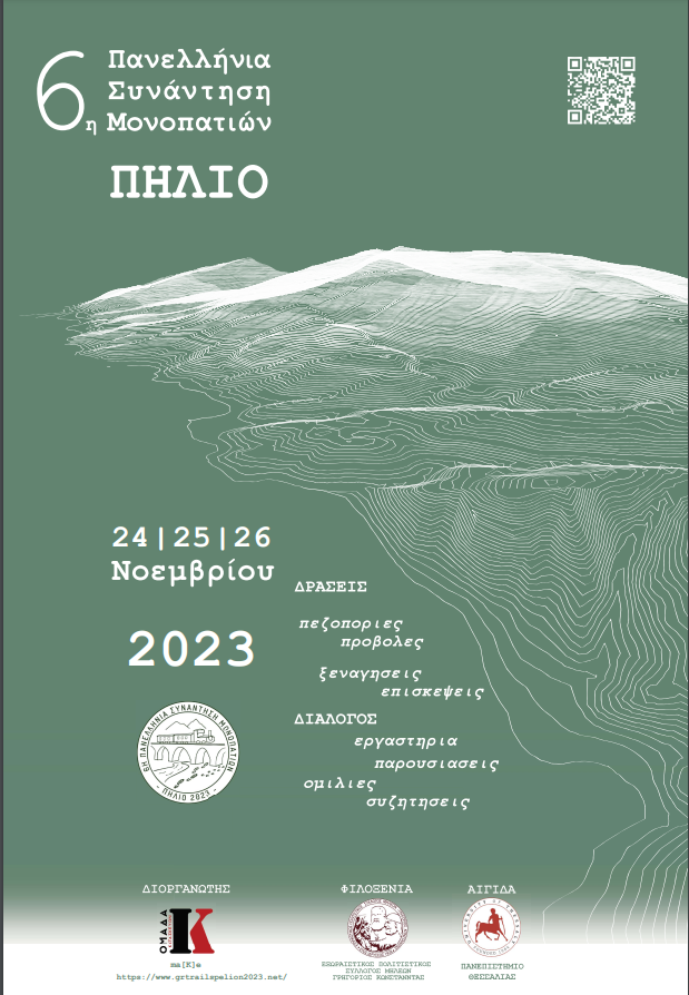 Το Νοέμβριο του 2023, παίρνοντας τη σκυτάλη μετά τον Υμηττό, τη Ροδόπη, την Ήπειρο, την Άνδρο και το Μαίναλο, το Πήλιο φιλοξενεί την 6η Πανελλήνια Συνάντηση Μονοπατιών, με διοργανωτή την Ερευνητική Μονάδα Δομικών Κατασκευών του Τμήματος Αρχιτεκτόνων Μηχανικών του Πανεπιστημίου Θεσσαλίας. Η εκδήλωση θα λάβει χώρα στις Μηλιές του Πηλίου στις 24-26 Νοεμβρίου 2023, στους χώρους του Εξωραϊστικού Πολιτιστικού Συλλόγου Μηλεών Πηλίου «Γρηγόριος Κωνσταντάς», με παράλληλες δράσεις στο Ευδόξειο Πνευματικό Κέντρο και το Γυμνάσιο Μηλεών, υπό την αιγίδα του Πανεπιστημίου Θεσσαλίας.