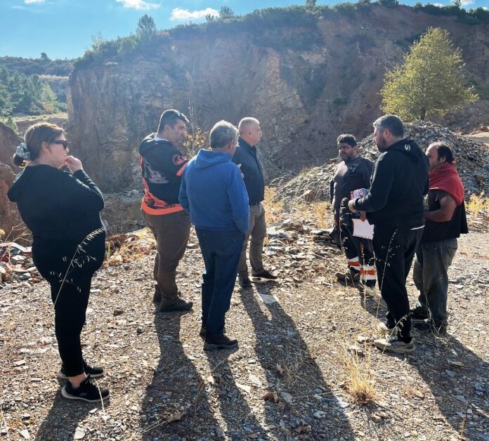 Οι λατόμοι ενημερώθηκαν από τον υπεύθυνο μεταλλειολόγο και τον τοπογράφο για τον χώρο εκμετάλλευσης του λατομείου.
