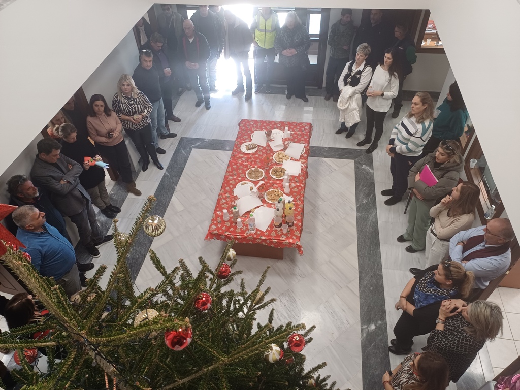 Ευχές για “Καλά Χριστούγεννα” και “Ευτυχισμένο το 2024” αντήλλαξαν σε μια λιτή τελετή σήμερα το μεσημέρι στο Δημαρχείο Νοτίου Πηλίου ο Δήμαρχος Μιχ. Μιτζικός και οι Αντιδήμαρχοι με τους υπαλλήλους του Δήμου.
