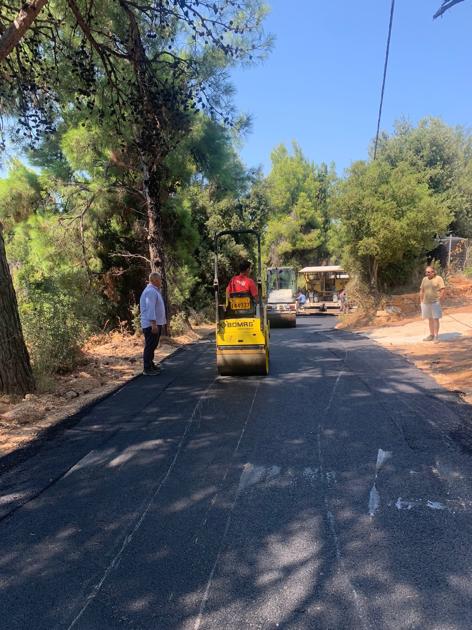 Παράλληλα με την ασφαλτόστρωση του δρόμου γίνεται και διαμόρφωση του χώρου στάθμευσης οχημάτων για την εξυπηρέτηση δημοτών και επισκεπτών.