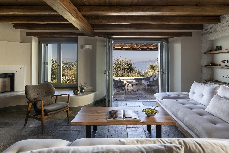 Η ανοιχτή εντέλει από παντού θέα προκαλεί και ενισχύει την ανάπαυση, χαλάρωση και την επιζητούμενη φιλόξενη καθημερινότητα, σε συνδυασμό με τους χώρους που σέβονται τις επιθυμίες και ανάγκες κατοίκησης των ενοίκων.