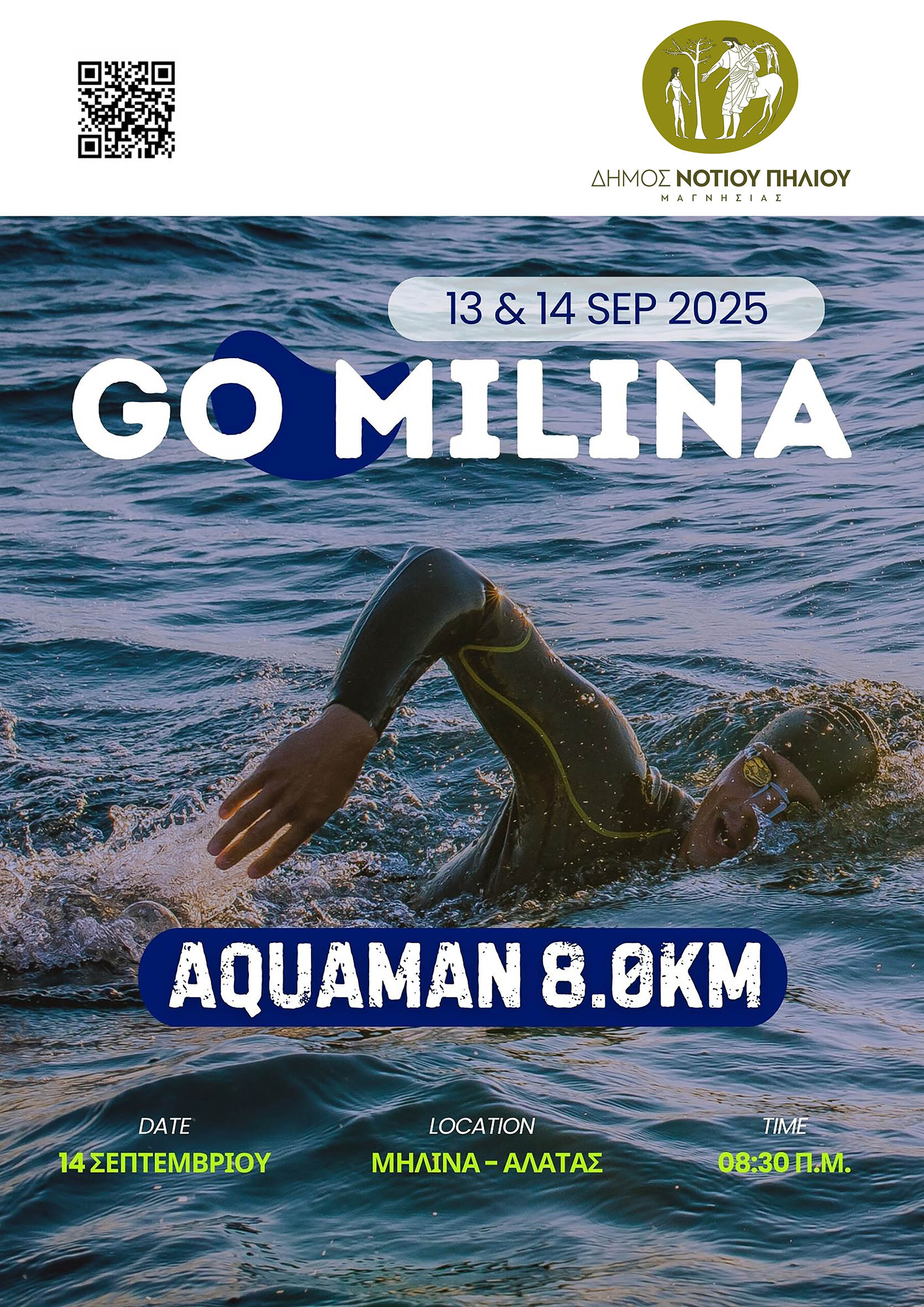Το 2ο GO MILINA τελεί υπό την αιγίδα του Δήμου Νοτίου Πηλίου και φέρει τηδιοργανωτική σφραγίδα της Goevents, συνδυάζοντας το φυσικό τοπίο με τον δυναμισμό της υπαίθρου και τη χαρά της συμμετοχής. Το GO MILINA που συνδιοργανώνει ο Δήμος Νοτίου Πηλίου με την GOEVENTS προάγει τη βιώσιμη ψυχαγωγία, τον ενεργό τρόπο ζωής και τη γνωριμία με τις φυσικές ομορφιές του Νοτίου Πηλίου, αποτελώντας σημείο συνάντησης για κατοίκους, επισκέπτες και αθλητές κάθε επιπέδου.