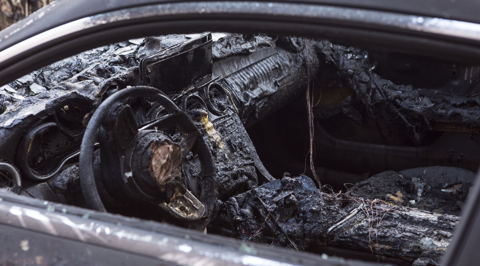 Δυστυχώς, μετά τη ολοκλήρωση της επιχείρησης, οι πυροσβέστες ανέσυραν από το καμένο αυτοκίνητο την απανθρακωμένη σορό.