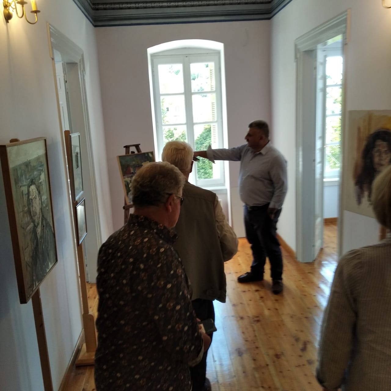 Αρχικά ξεναγήθηκε στο ξακουστό Μουσείο Νικόλα στον Άγιο Γεώργιο Νηλείας και στη συνέχεια στο Μουσείο Πολιτισμού «Κώστας Λιάπης»-Αρχοντικό Τζωρτζέϊκο, όπου φιλοξενούνται οι εκθέσεις των Richard Rafael Roland Risse και Κων. Κομνηνού.