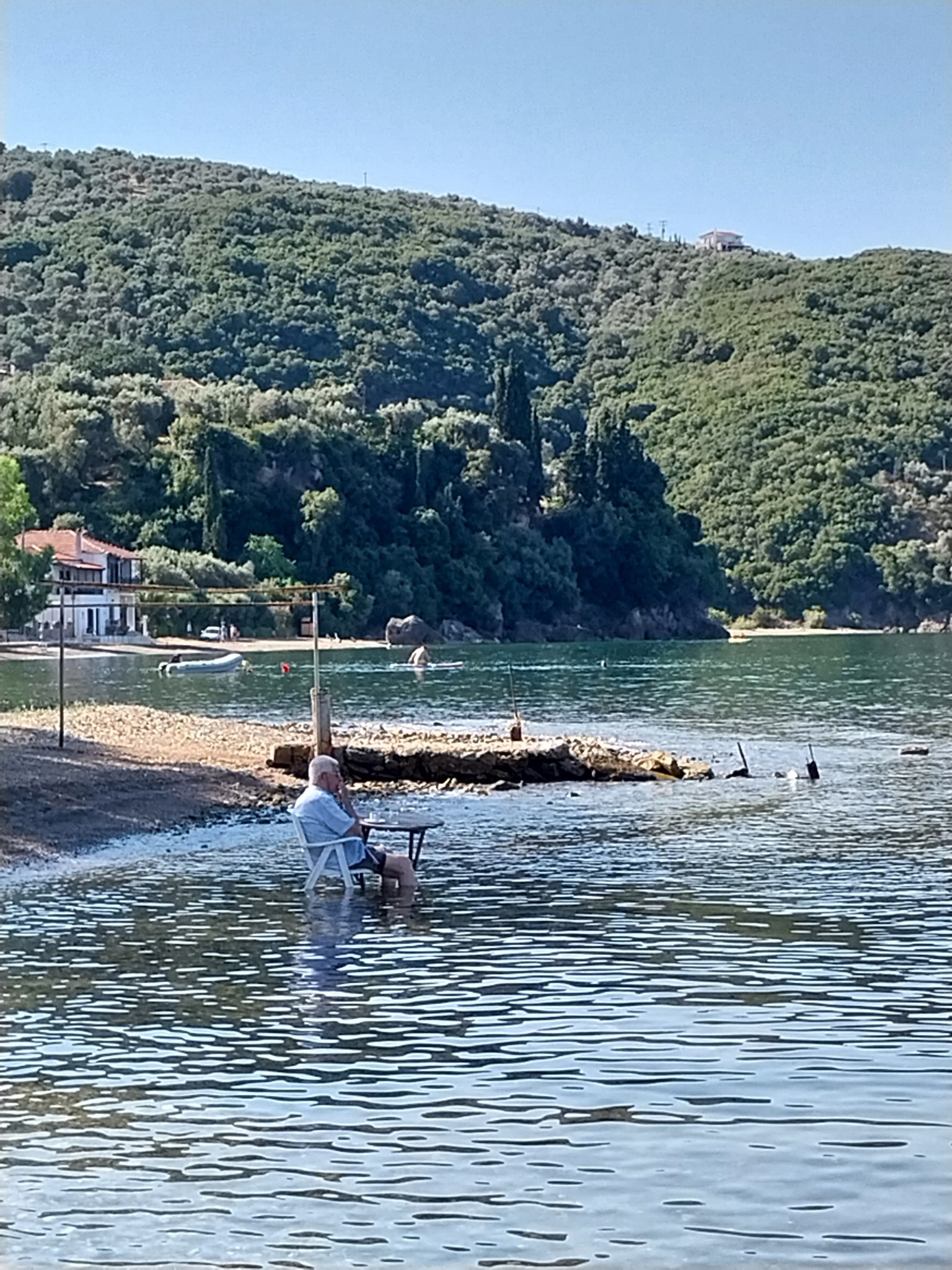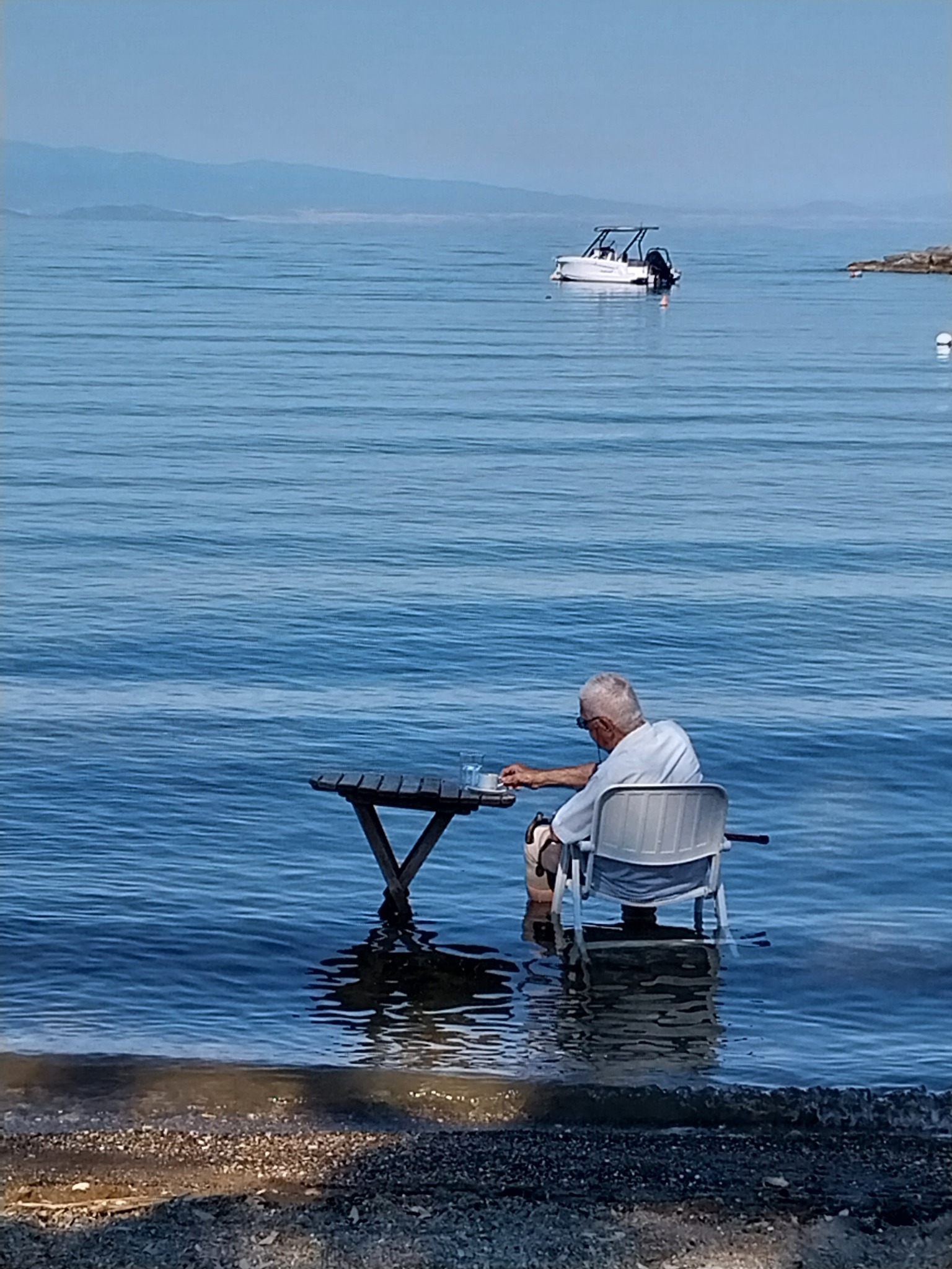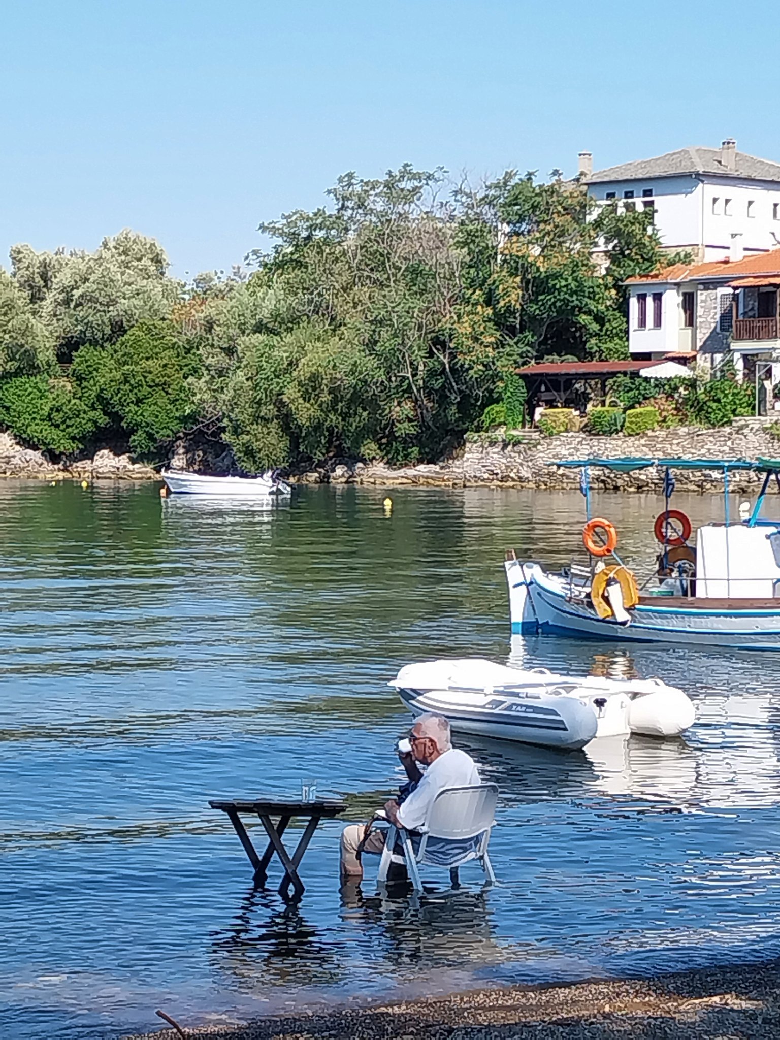 Υψηλές θερμοκρασίες επικρατούν στη Μαγνησία κι έτσι ο 90χρονος κ. Αχιλλέας, βρήκε τον τρόπο να δροσιστεί φυσικά. Τι έκανε; Έβαλε το τραπεζάκι και την καρεκλίτσα του μέσα στη θάλασσα του Λεφόκαστρου, ετοίμασε το καφεδάκι του κι έκανε όλους εμάς να τον…ζηλέψουμε.