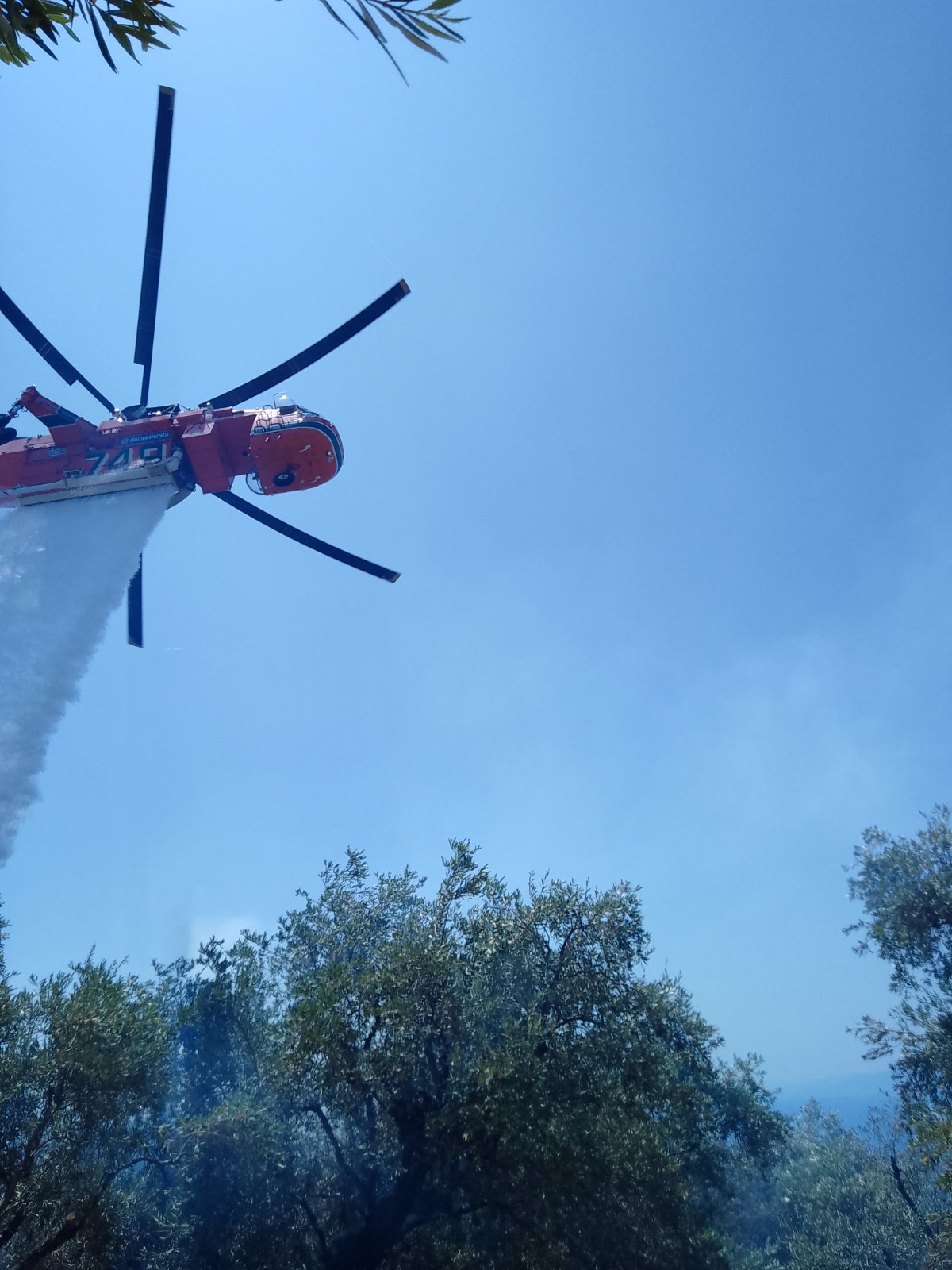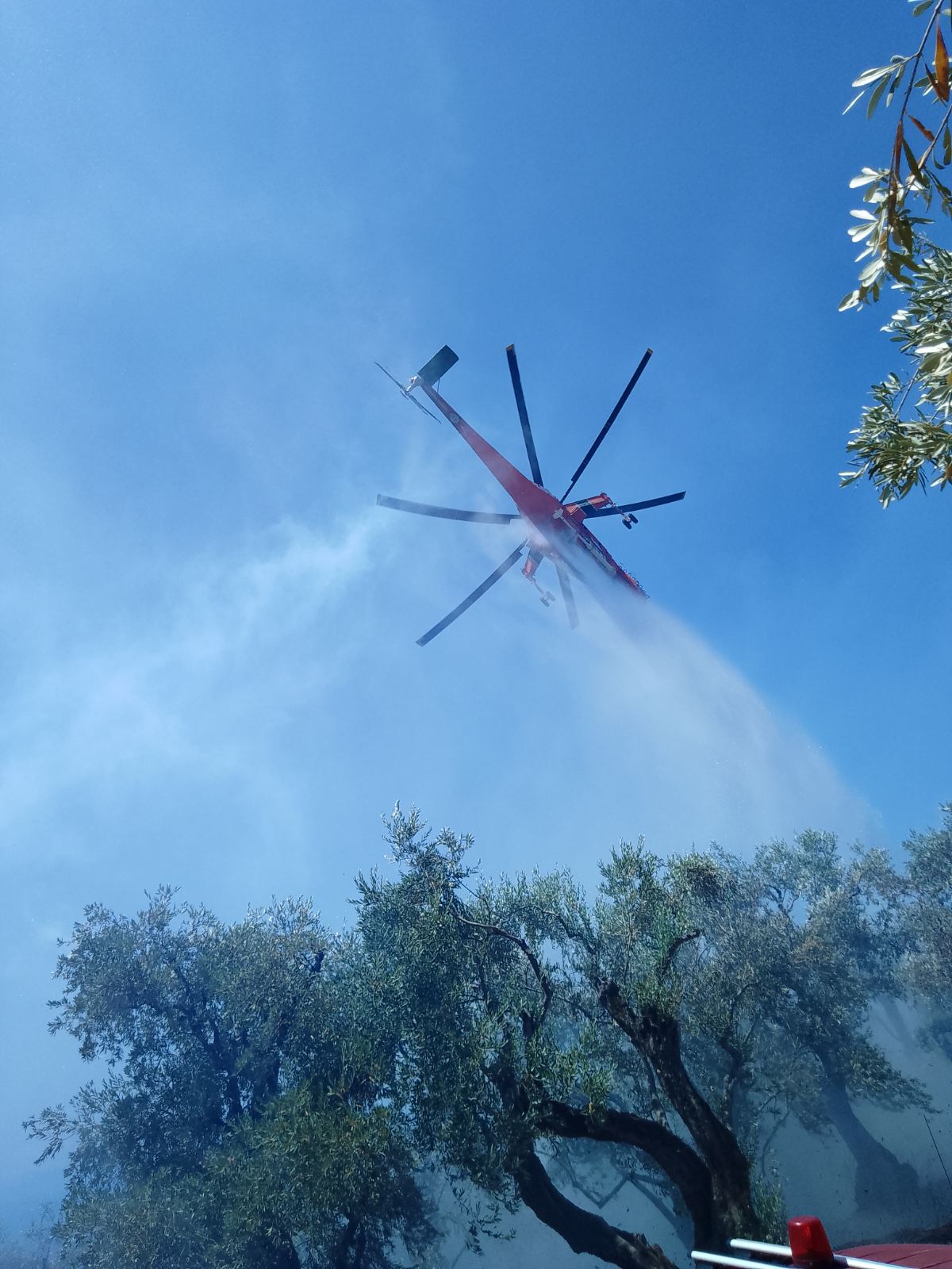 Όπως τόνισε άμεσα έσπευσαν οι πυροσβεστικές δυνάμεις κι ένα πυροσβεστικό ελικόπτερο Έρικσον, το οποίο πραγματοποιεί συνεχείς ρίψεις νερού στο σημείο της πυρκαγιάς.