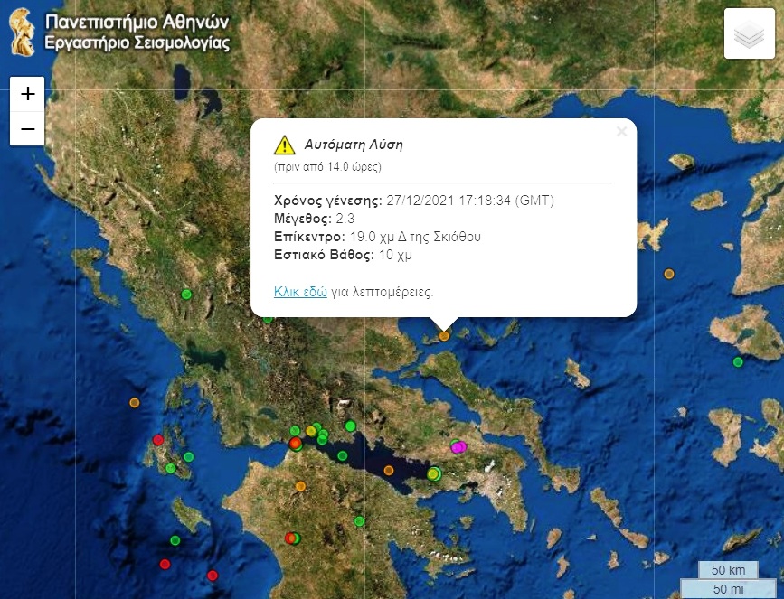 Η δόνηση ήταν μεγέθους 2,3 βαθμών της κλίμακας Ρίχτερ και είχε επίκεντρο 19 χλμ. Δυτικά της Σκιάθου, 37,1 χλμ. Νοτιοανατολικά του Βόλου και εστιακό βάθος 10 χλμ.