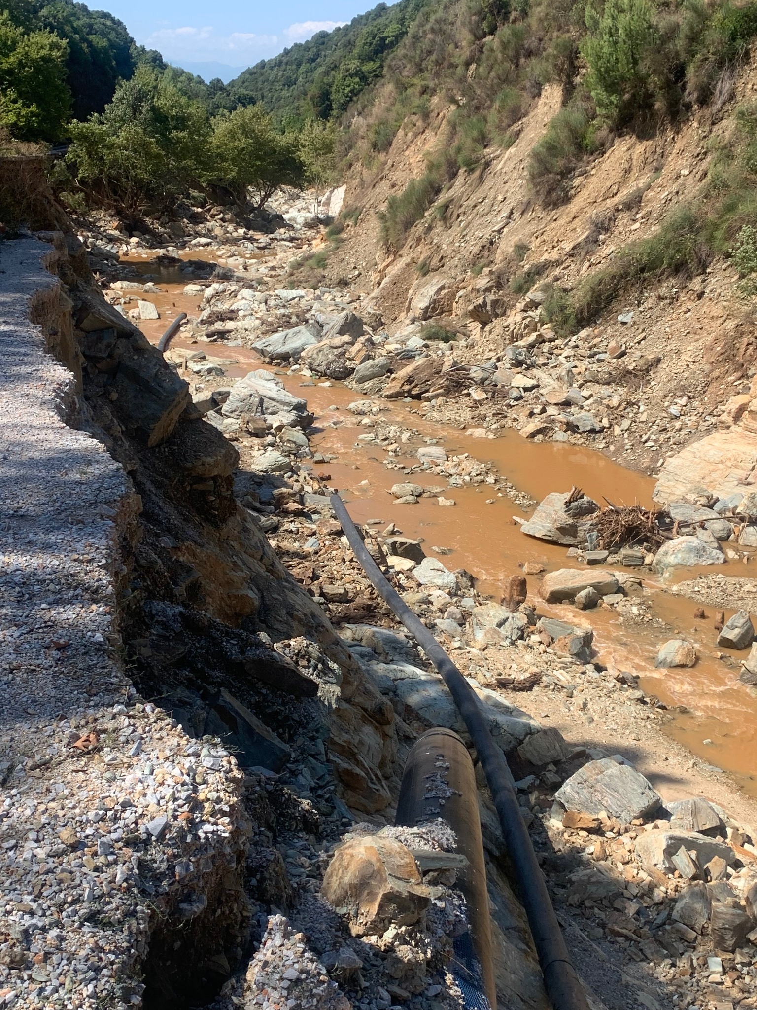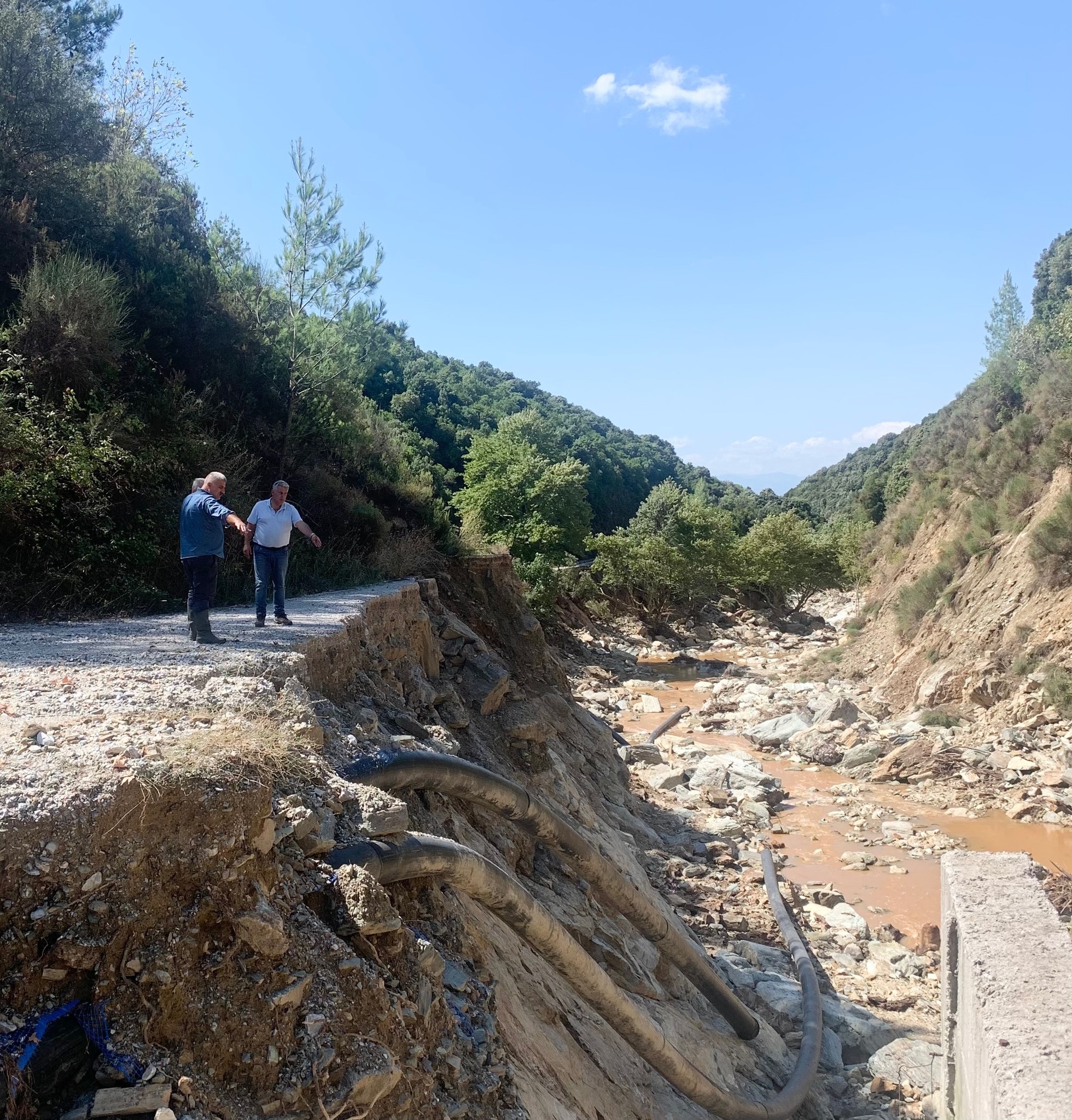 Αυτοψία στο Φράγμα Παναγιώτικο έκανε ο Δήμαρχος Νοτίου Πηλίου Μιχ. Μιτζικός με τον Διευθυντή Ύδρευσης της ΕΥΔΑΠ Κώστα Παπαδάκη, τον Υπεύθυνο Ύδρευσης του Δήμου Γ. Μανούδη και τον Αντιδήμαρχο Ύδρευσης Απ. Διανέλλο. Είναι εμφανής η ολοσχερής καταστροφή των αγωγών και κατάπτωσή τους μέσα στην κοίτη του ρέματος. Ο κ. Μιτζικός είχε επιτόπου τηλεφωνική επικοινωνία με τον Αναπληρωτή ΥΠΕΣ Θ. Λιβάνιο για τις άμεσες ενέργειες που απαιτούνται για την τάχιστη αποκατάσταση των αγωγών Ύδρευσης του Φράγματος Παναγιώτικο.