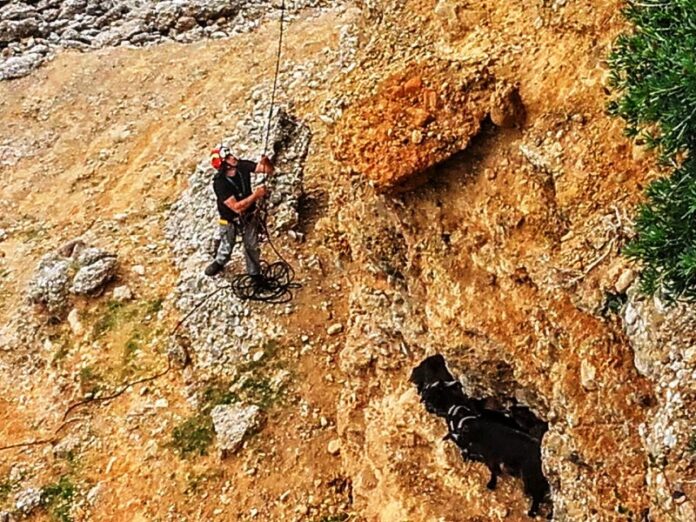 Το απόγευμα της Κυριακής οι πυροσβέστες κατάφεραν να διασώσουν πέντε ζώα, οκτώ από τα οποία τελικά έπεσαν στον γκρεμό και έχασαν τη ζωή τους.