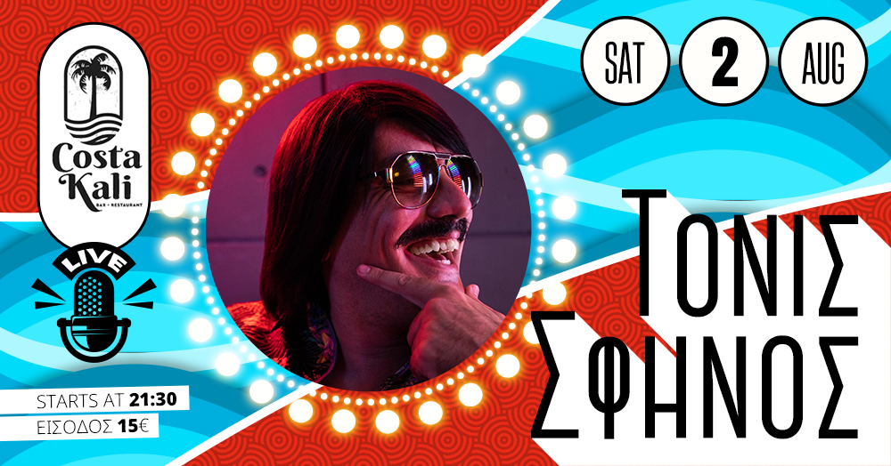 Ο Τόνι Σφηνος, γνωστός performer και παρουσιαστής, με πορεία 14 χρόνων στη διασκέδαση και αμέτρητες συναυλίες σε Ελλάδα και εξωτερικό, έρχεται το Σάββατο 2 Αυγούστου στο Costa Kali στην Αφήσσο με την μπάντα του, τους Playmates σε ένα μοναδικό μουσικό πρόγραμμα με παλιές αγαπημένες αλλά και μοντέρνες επιτυχίες.