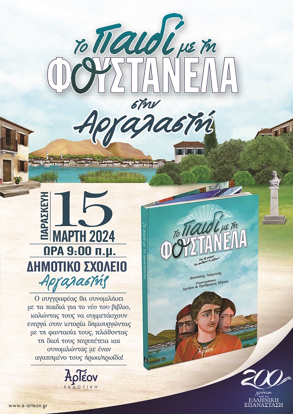 Στο δημοτικό σχολείο Αργαλαστής θα παραβρεθεί την Παρασκευή 15 Μαρτίου ο συγγραφέας παιδικών βιβλίων Διονύσης Λεϊμονής, ώστε να μιλήσει στους μαθητές/τριες για το βιβλίο του με τίτλο «Το παιδί με την φουστανέλα».