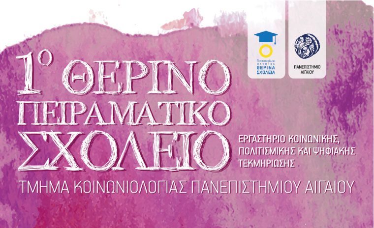 Το Εργαστήριο Κοινωνικής και Πολιτισμικής Ψηφιακής Τεκμηρίωσης του Τμήματος Κοινωνιολογίας του Πανεπιστημίου Αιγαίου, πραγματοποιεί το 1ο Πειραματικό Θερινό Σχολείο: Οπτικές και Συμμετοχικές Μέθοδοι Έρευνας για την Κοινωνική Αλλαγή, που θα υλοποιηθεί το χρονικό διάστημα 24-30 Ιουλίου 2017 στο Συνεδριακό & Πολιτιστικό Κέντρο Παν/μιο Θεσσαλίας, Παλαιά Μονή Πάου, Πήλιο.