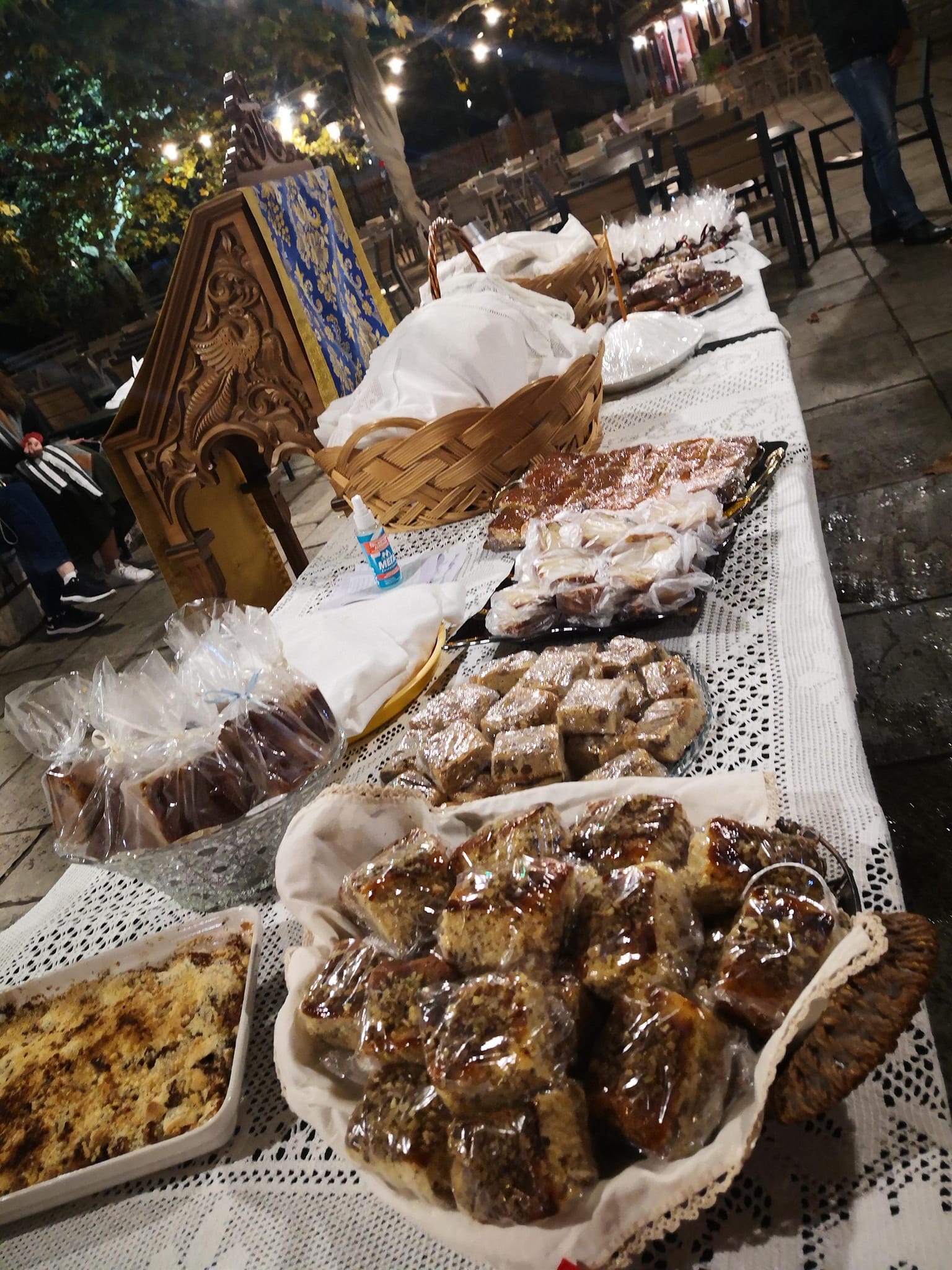 Όπως αναφέρει η κ. Βασιλική Μπαρούτα «Οι γυναίκες λοιπόν του χωριού φτιάχνουν και προσφέρουν κάθε είδους μηλόπιτες και μηλοπιτάκια μετά τον γιορτινό εσπερινό, αφού διαβαστούν και ευλογηθούν μαζί με τα πρόσφορα.