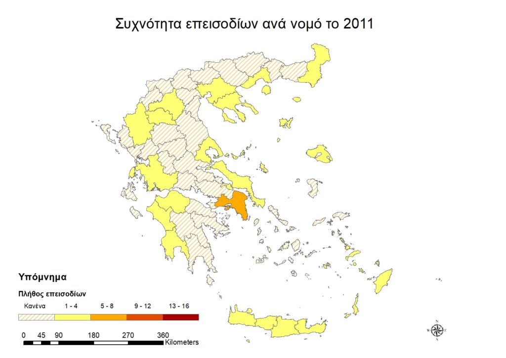 1/8/2011 – Διάρκεια: 1 ημέρα, Ένταση φαινομένου: Μέτρια – Επιπτώσεις: Αρκετές