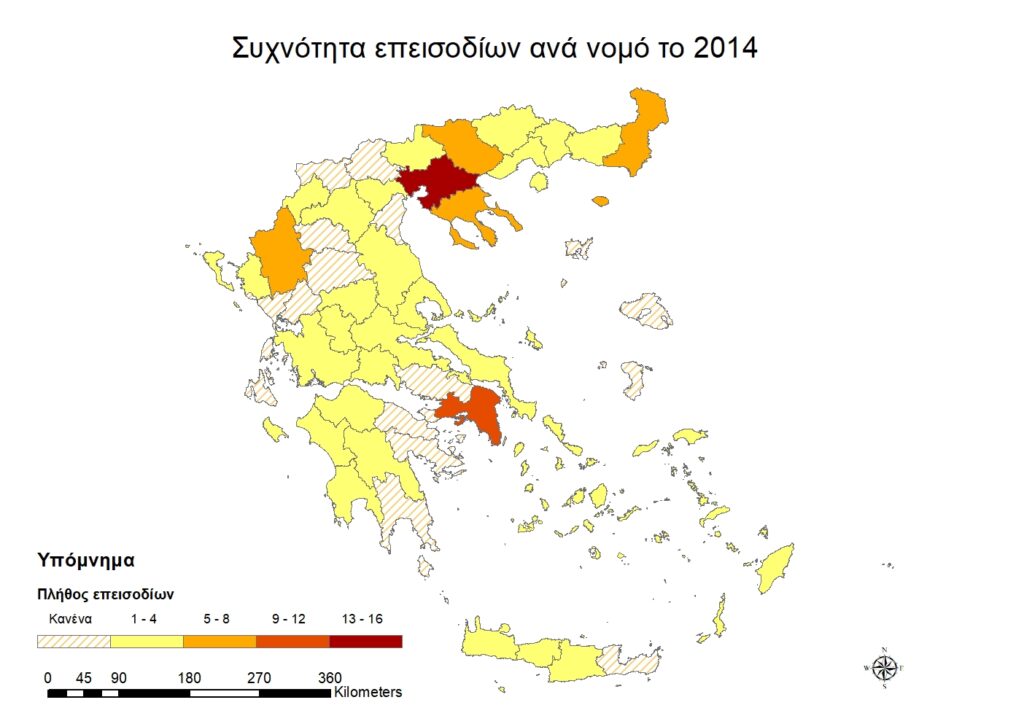 1/8/2014 – Διάρκεια: 1 ημέρα, Ένταση φαινομένου: Μέτρια – Επιπτώσεις: Εκτεταμένες