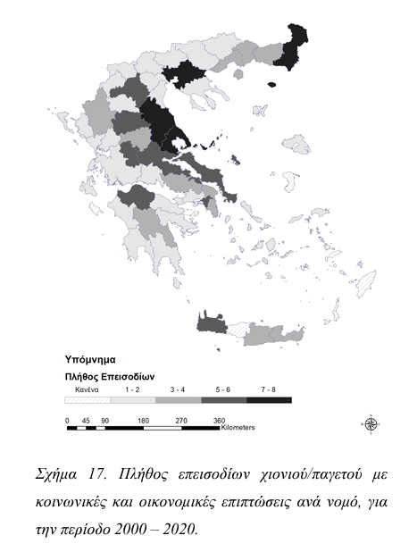 Πηγή είναι η βάση δεδομένων που έχει αναπτύξει η μονάδα meteo με επεισόδια του καιρού με κοινωνικο-οικονομικές επιπτώσεις στην Ελλάδα, μία λιγότερο λεπτομερής εκδοχή της οποίας είναι διαθέσιμη online στο meteo.gr (https://meteo.gr/weather_cases.cfm), αλλά και σε online διαδραστικό χάρτη (https://meteo.gr/weatherEvents.cfm).