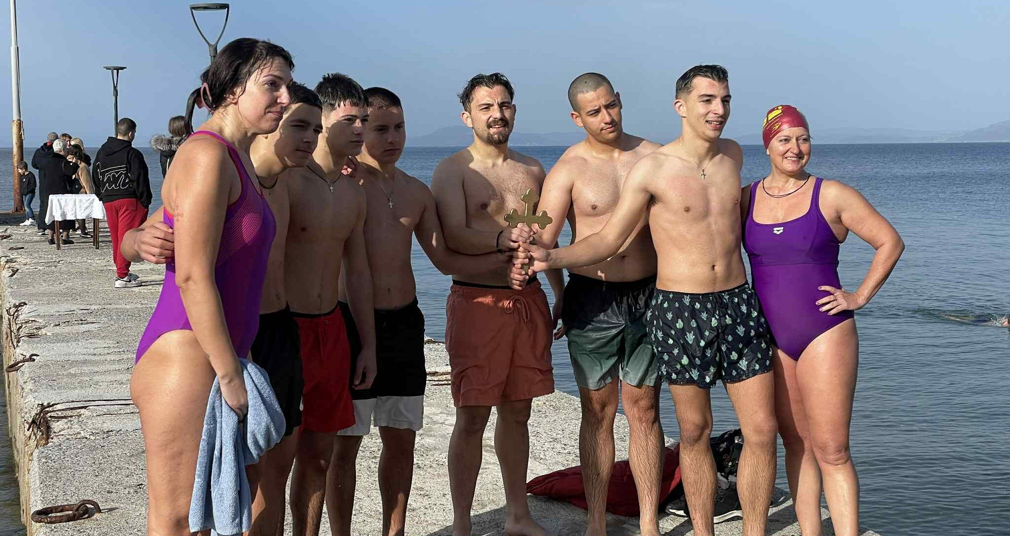 Οκτώ κολυμβητές και κολυμβήτριες έπεσαν στη θάλασσα διεκδικώντας τον Σταυρό, με τον Γιώργο Ζούζουλα να τα καταφέρνει πρώτος, ενώ όλοι έλαβαν την ευλογία.