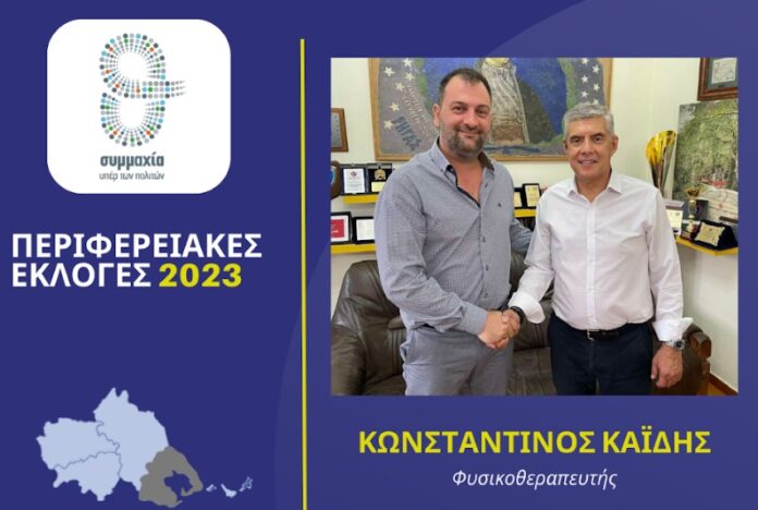 Τον φυσικοθεραπευτή Κωνσταντίνο Καΐδη που κατέρχεται υποψήφιος περιφερειακός σύμβουλος στην Π.Ε. Μαγνησίας στις αυτοδιοικητικές εκλογές του Οκτωβρίου, καλωσόρισε ο Περιφερειάρχης Θεσσαλίας Κώστας Αγοραστός στον συνδυασμό «Συμμαχία υπέρ των πολιτών» που έχει σταθερά στο επίκεντρο τον άνθρωπο και αγωνίζεται με έργα, δράσεις, πρωτοβουλίες για μια Περιφέρεια χωρίς διακρίσεις και αποκλεισμούς.