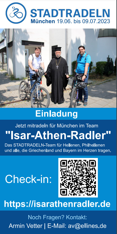 Με αφορμή την πρόσκληση και το πρόγραμμα ποδηλατοδρομίας STADTRADELN του Δήμου Μονάχου, τα αδέλφια Armin και Robert Vetter (με πατέρα Βαυαρό και μητέρα Ελληνίδα) έλαβαν την πρωτοβουλία να ιδρύσουν – στα πλαίσια αυτού του προγράμματος – μια ομάδα με τον τίτλο “Isar-Athen-Radler” με σκοπό την προβολή της ελληνοβαυαρικής φιλίας και καλούν όλους τους Έλληνες και τους βαυαρούς φιλέλληνες να λάβουν μέρος στον διαγωνισμό ποδηλατοδρομίας STADTRADELN του Δήμου Μονάχου, εγγραφόμενοι, όσοι βεβαίως το επιθυμούν, στην ομάδα “Isar-Athen-Radler”.