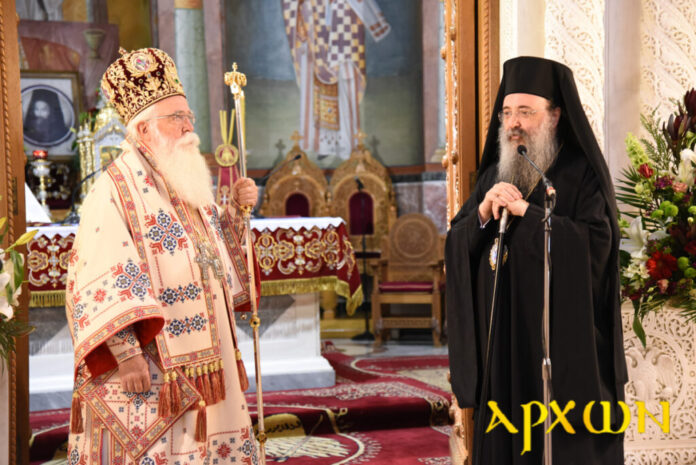 Ο Μητροπολίτης Δημητριάδος στο κήρυγμά του στάθηκε στην προσωπικότητα και την προσφορά του Παλαιών Πατρών Γερμανού, αποκαλώντας τον Ηγέτη του Έθνους. Επίσης, ανέφερε πως ο Εθνεγέρτης Γερμανός πάσχιζε να ενώσει τους Έλληνες. “Οι επετειακές εκδηλώσεις για τα 200 χρόνια πρέπει να ατενίζουν το μέλλον της πατρίδος μας”, κατέληξε χαρακτηριστικά. Τέλος, επαίνεσε τον οικείο Μητροπολίτη για την μεγαλοπρεπή υποδοχή που επεφύλαξε στον προκάτοχό του».