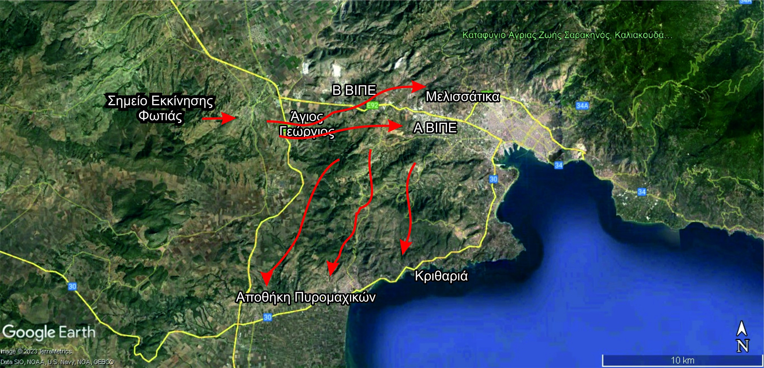 Το πρωί ο άνεμος έγινε από δυτικός σε βόρειο, οπότε η φωτιά ξεκίνησε προς Κριθαριά και Αγχίαλο. Ουσιαστικά ακολουθούσαμε τη φωτιά και δεν υπήρχε καμία πρόβλεψη ούτε επιχειρησιακή ούτε ουσιαστική. Και μετά ήρθε και η ανατίναξη αφού επιτρέψαμε τη φωτιά να μπει σε αποθήκες μιας από της πιο νευραλγικές στρατιωτικές βάσεις της χώρας. Άμυνα μηδέν.