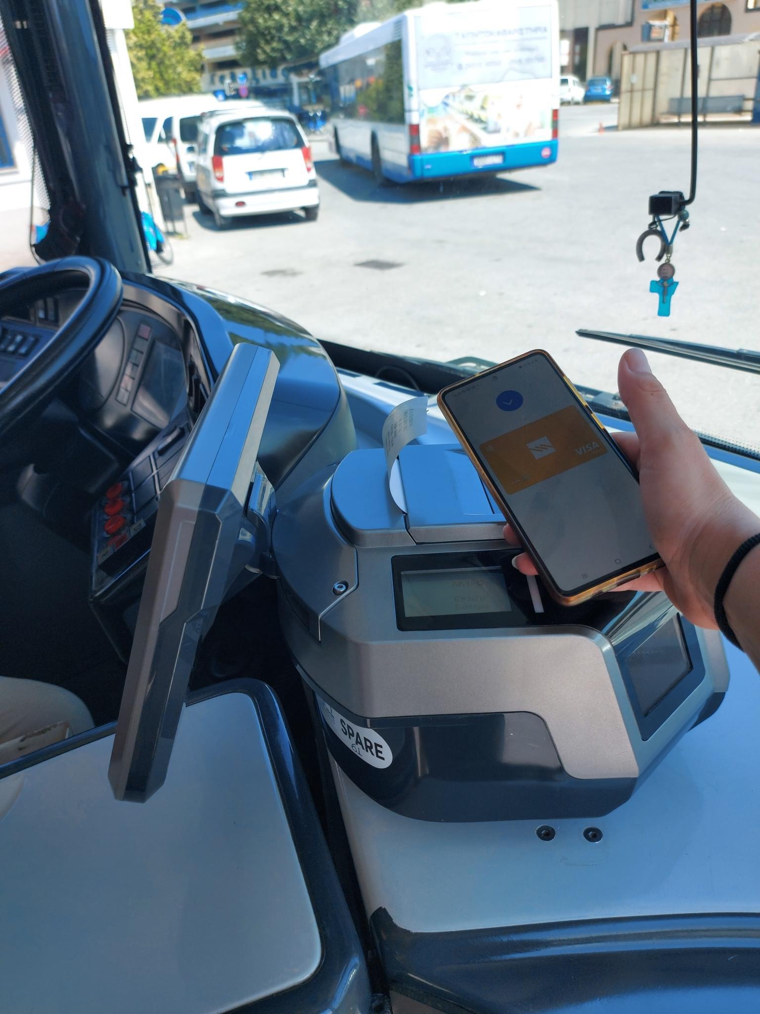 Πλέον ο επιβάτης έχει την δυνατότητα να πληρώσει το εισιτήριο του εντός του λεωφορείου με κάρτα χρεωστική ή πιστωτική ακόμη και με το τηλέφωνο του ζητώντας από τον οδηγό να πληρώσει με κάρτα!
