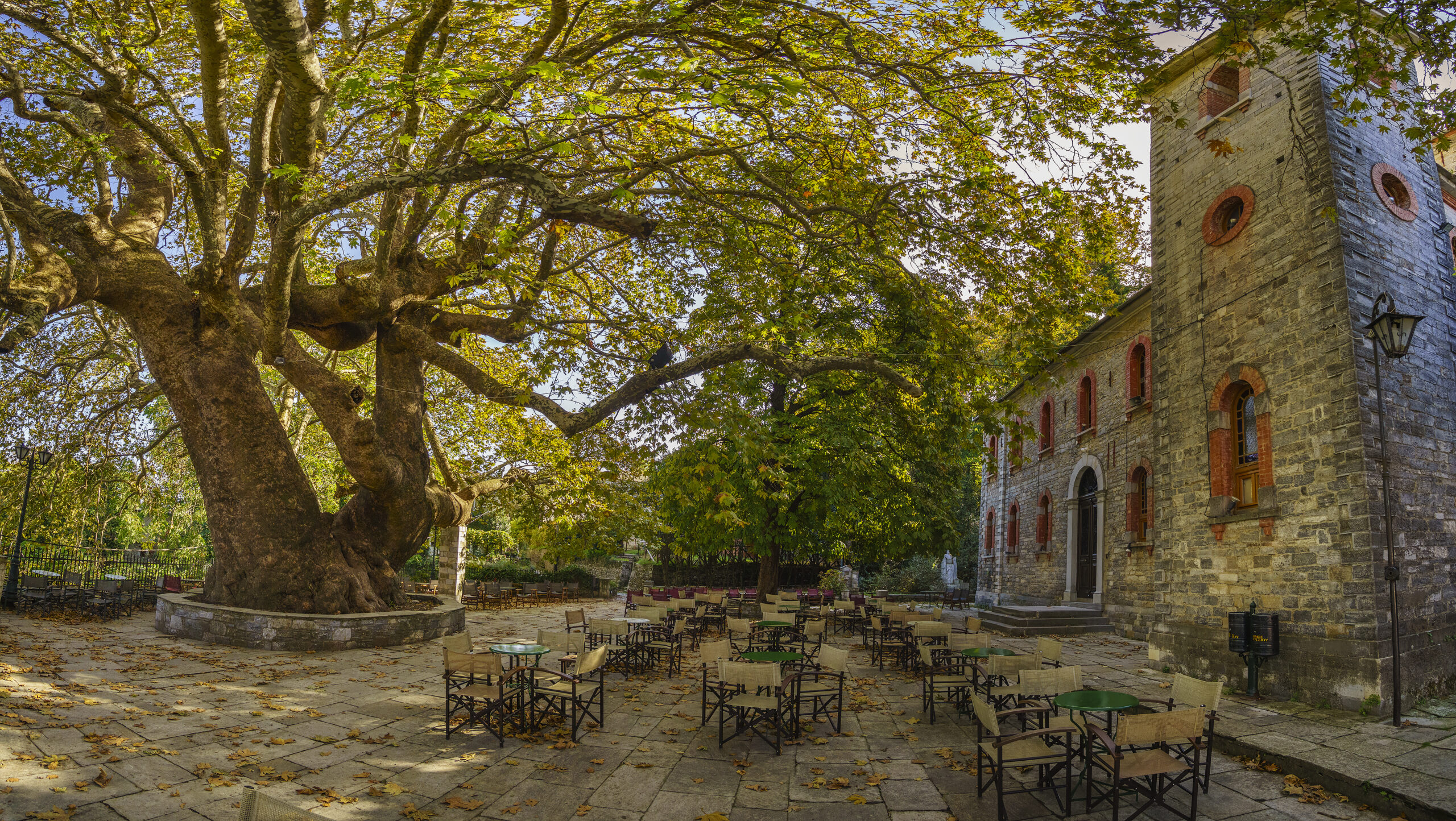 Στη μικρή πλατεία του Ταξιάρχη κυριαρχεί η μνημειακή εκκλησία του 1786 και αν είναι ανοιχτή αξίζει να μπείτε για να θαυμάσετε το ξυλόγλυπτο, βενετσιάνικου τύπου, τέμπλο, που ολοκληρώθηκε το 1749. Πιείτε νερό από την κρήνη με τους τέσσερις κρουνούς και καθίστε για φαγητό και καφέ στα τραπεζάκια κάτω από τα ψηλά πλατάνια.
