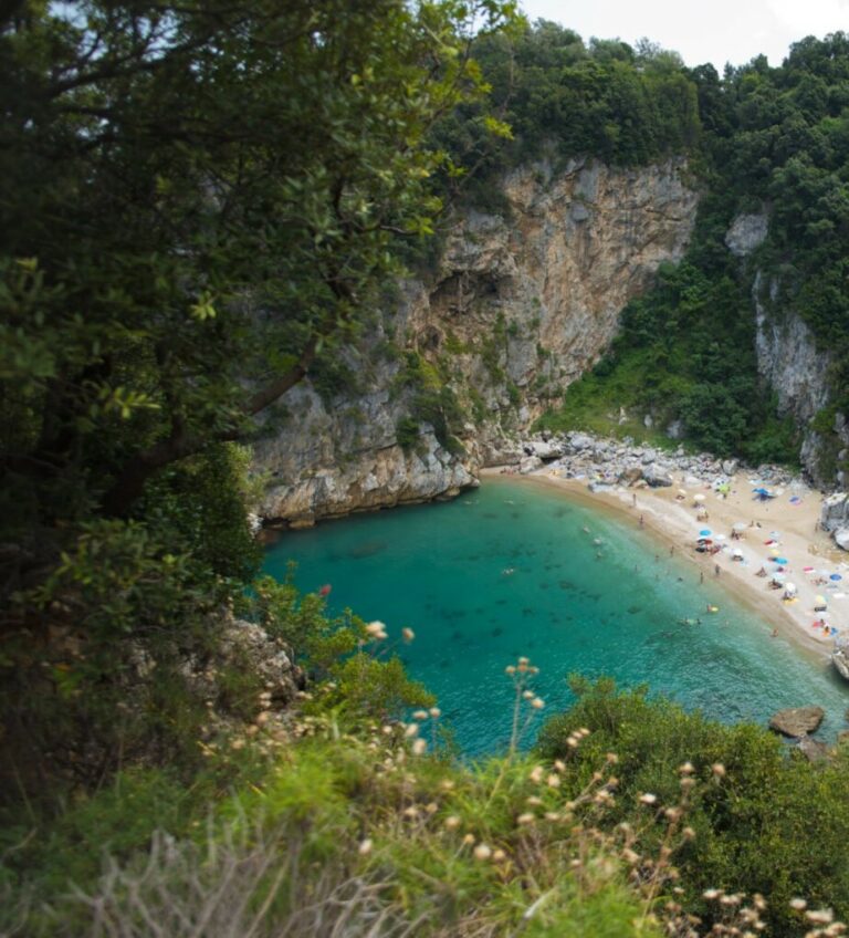 Η Νταμούχαρη χωρίζεται από μια γλώσσα γης-κάβο στα δυο: την Παλιά και τη Νέα Νταμούχαρη. Παρόλο που η εικόνα έχει αλλάξει σημαντικά από το 1970, όταν ήταν ακόμη ένα μυστικό που λίγοι γνώριζαν, δεν έχει χάσει τη γραφικότητά της. Βέβαια, τα σπίτια που είναι κτισμένα μέσα στο πράσινο έγιναν πολύ περισσότερα, όπως και ο κόσμος που γεμίζει το καλοκαίρι τα ενοικιαζόμενα δωμάτια, τα καφέ, τα τουριστικά μαγαζιά, τις ταβέρνες και την παραλία με τα μεγάλα λευκά βότσαλα. Ιδανική εποχή για να έρθετε λοιπόν, αν θέλετε να αποφύγετε την πολυκοσμία, είναι η άνοιξη και το φθινόπωρο.