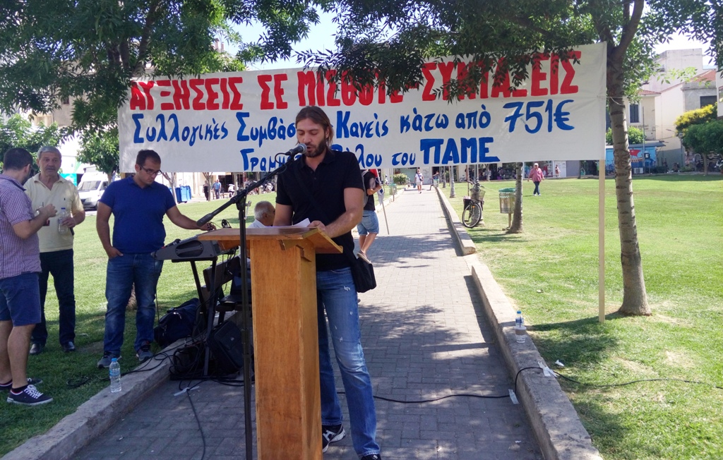 Στους συγκεντρωμένους μίλησε ο Παναγιώτης Τσιτσιρίκης μέλος της Γραμματείας του ΠΑΜΕ και της Διοίκησης του Εργατικού Κέντρου Βόλου, που επισήμανε ότι τη σημερινή απεργία αποφάσισαν οι πλειοψηφίες της ΓΣΕΕ και της ΑΔΕΔΥ, με ένα πλαίσιο που δεν έχει καμία σχέση μ’ αυτό που βάζει το ΠΑΜΕ στους εργαζόμενους, ένα πλαίσιο πάλης που να πατάει πάνω στις ανάγκες τους.
