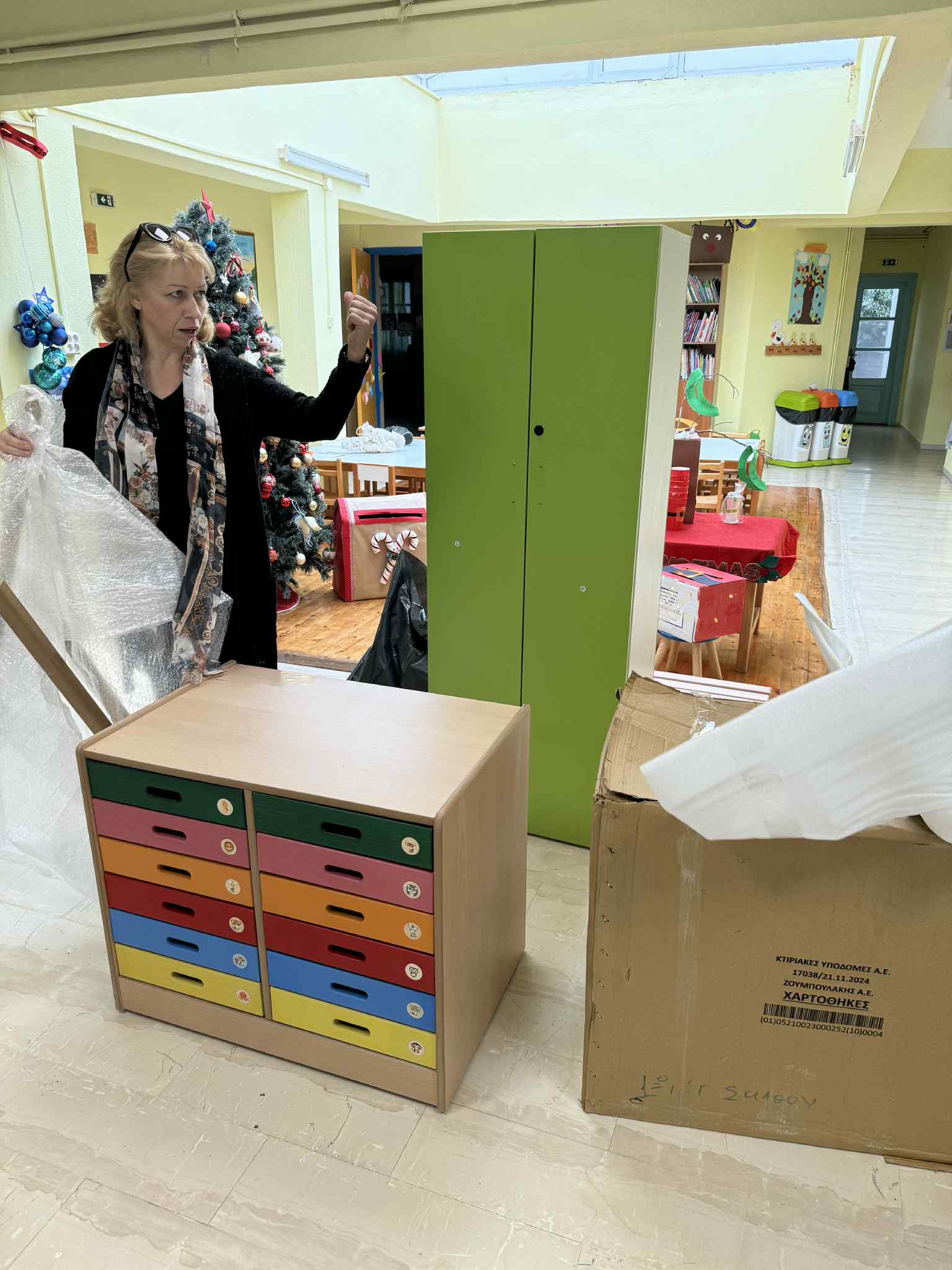 1ο Νηπιαγωγείο: 1 βιβλιοθήκη, 1 παγκάκι, 3 μαγνητικούς πίνακες, 2 χαρτοθήκες, 1 παιχνίδι μαθηματικής σκέψης, 1 σύνθεση πόλης