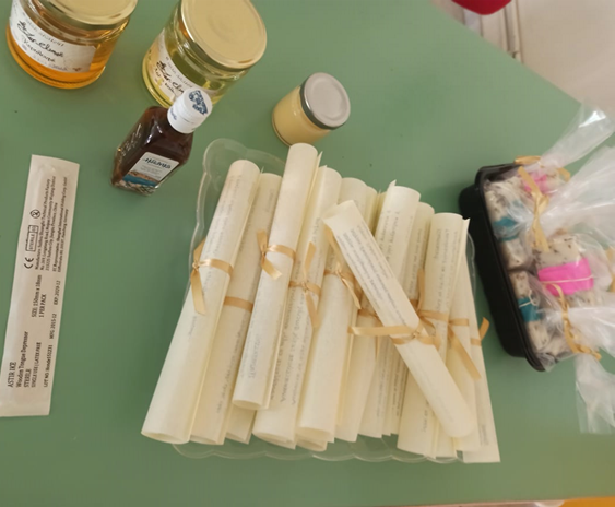 Στις εργασίες των μαθητριών πέρα από τις φαρμακευτικές ιδιότητες τους, αναδείχτηκαν οι θεραπευτικές ιδιότητες των βοτάνων με έμφαση στο δέρμα και οι χρήσεις τους σε καλλυντικά και αισθητικές εφαρμογές σε πρόσωπο και σώμα. Τέλος επιλέχτηκε μία συνταγή για κάθε βότανο και παρασκευάστηκε εργαστηριακά στο εργαστήριο της ειδικότητας.