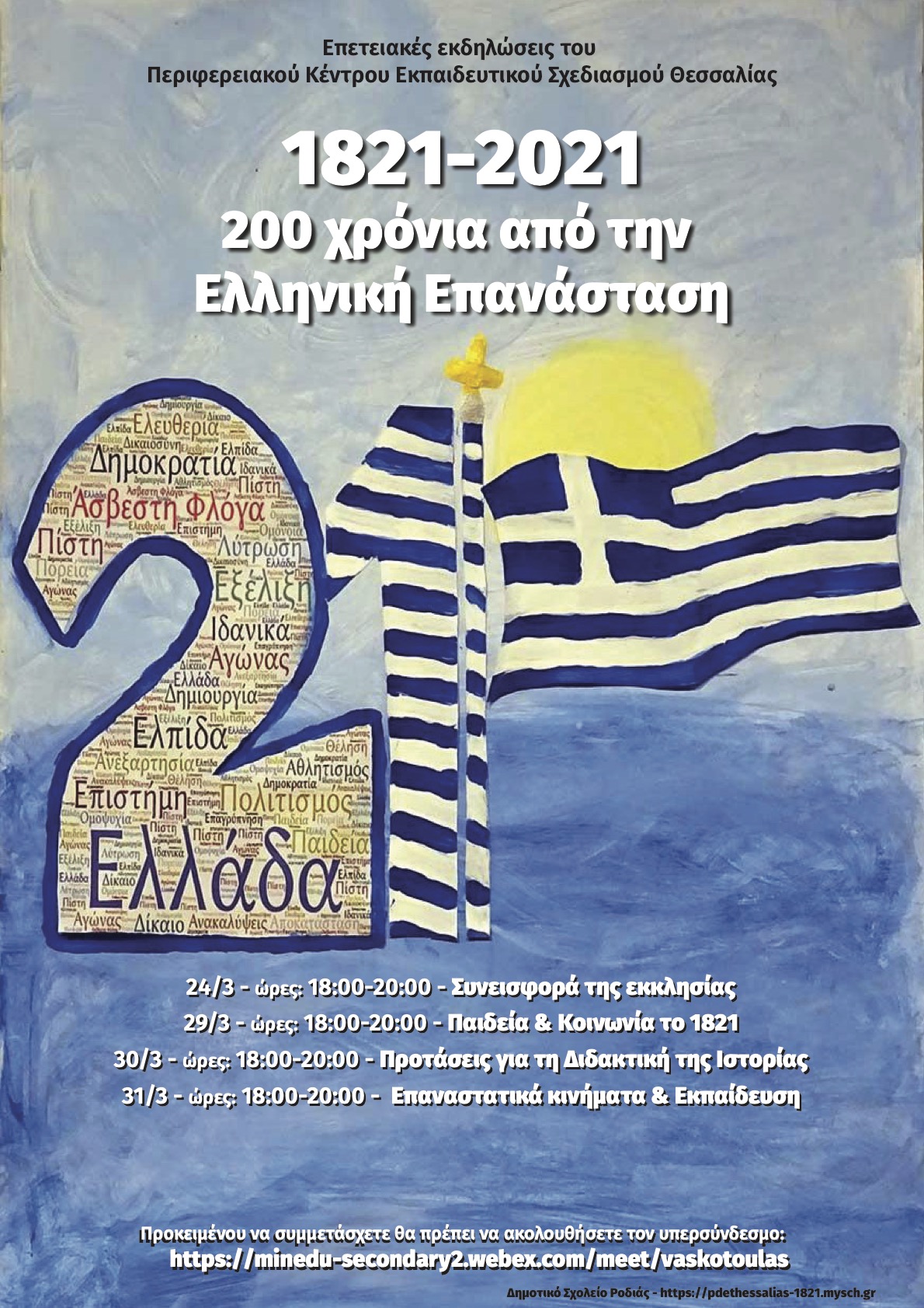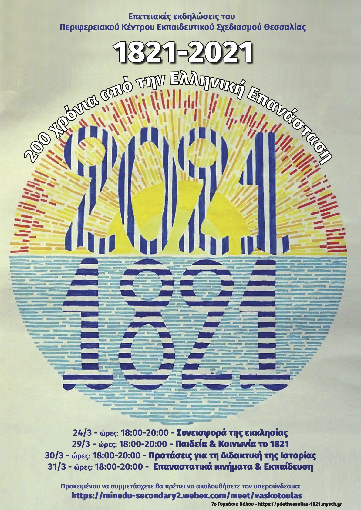Σε εφαρμογή Ομόφωνης Απόφασης της Ολομέλειας του Περιφερειακού Κέντρου Εκπαιδευτικού Σχεδιασμού Θεσσαλίας οργανώθηκαν επετειακές εκδηλώσεις τιμής για να τιμήσουμε τα διακόσια χρόνια από την Επανάσταση του 1821. Οι επετειακές εκδηλώσεις τιμής του ΠΕ.Κ.Ε.Σ. Θεσσαλίας εντάσσονται στο πλαίσιο των εκδηλώσεων τιμής προς την Επανάσταση του 1821 που οργανώνονται από την Περιφερειακή Διεύθυνση Πρωτοβάθμιας και Δευτεροβάθμιας Εκπαίδευσης Θεσσαλίας.