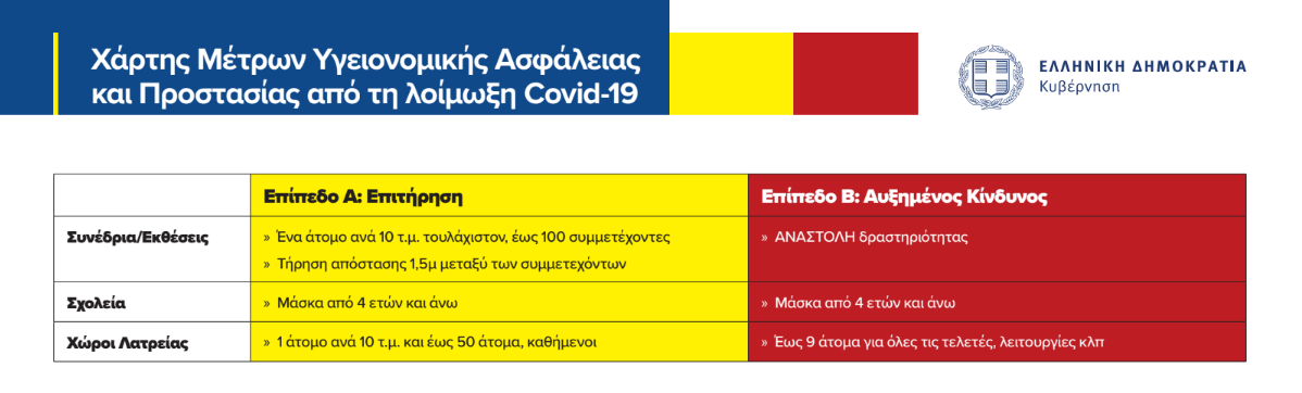 Στο επίπεδο Β (κόκκινο) προβλέπεται αναστολή όλων των δημόσιων συναθροίσεων στο πλαίσιο των Συνταγματικών προβλέψεων για την προστασία της Δημόσιας Υγείας.