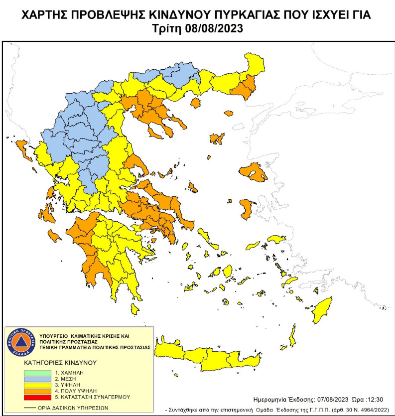 Ταυτόχρονα υψηλός κίνδυνος- Επίπεδο 3- υπάρχει στην νοτιοδυτική Μαγνησία.