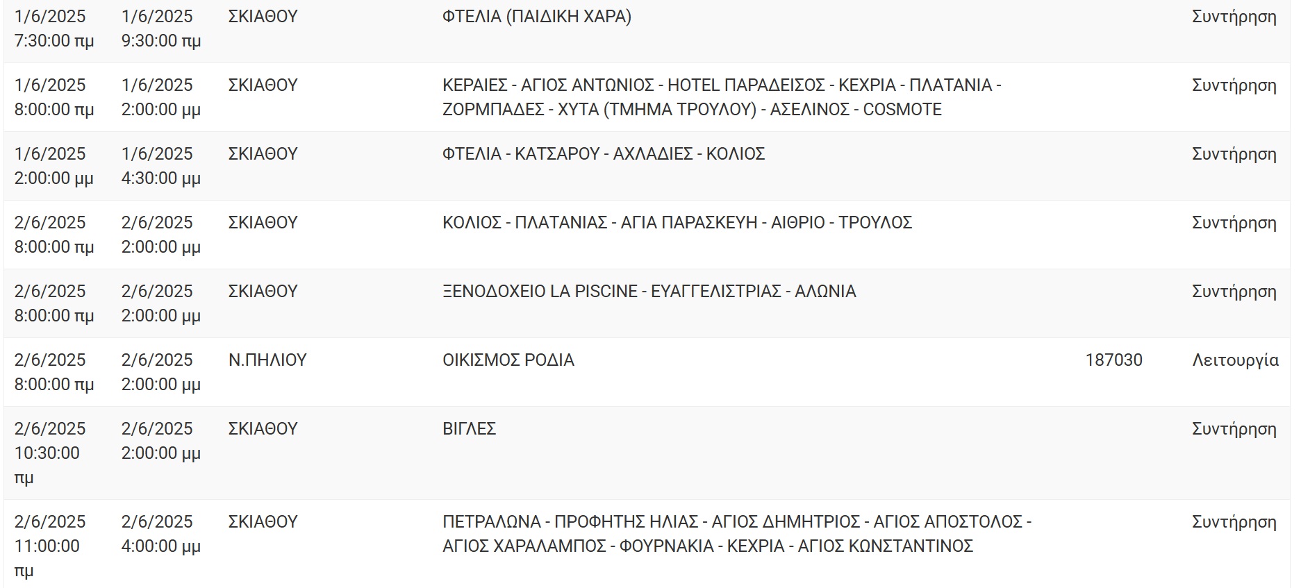 Αν οι εργασίες τελειώσουν νωρίτερα, το ρεύμα θα ξαναδοθεί πριν το χρόνο λήξης της διακοπής που αναφέρεται πιο πάνω.