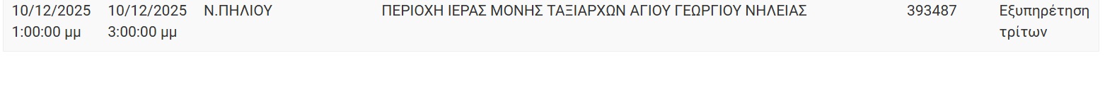 Αν οι εργασίες τελειώσουν νωρίτερα, το ρεύμα θα ξαναδοθεί πριν το χρόνο λήξης της διακοπής που αναφέρεται πιο πάνω.